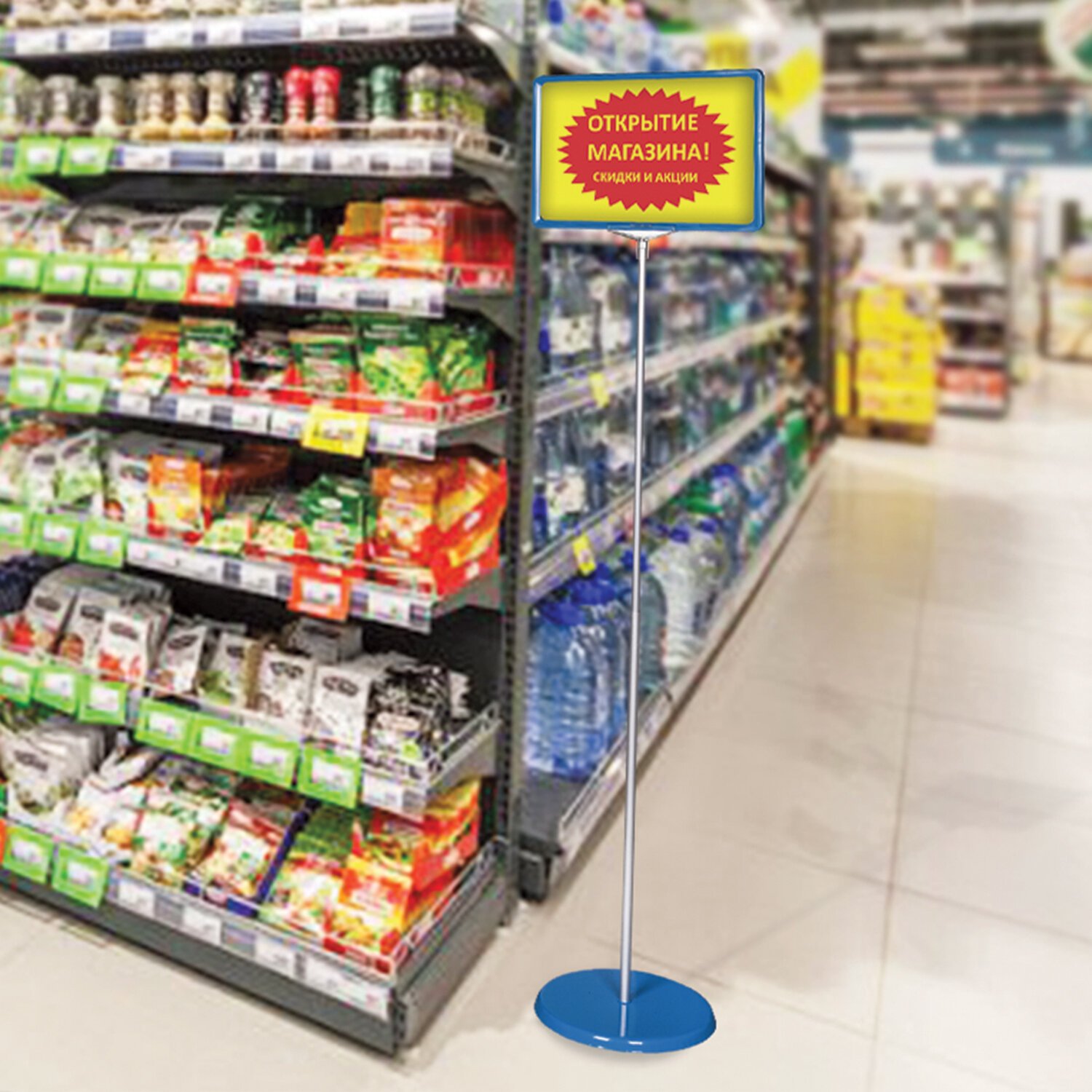 Стойка-инфодержатель напольная (ценникодержатель), 210x300 мм, А4, сталь, СИНЯЯ, BRAUBERG, 291034