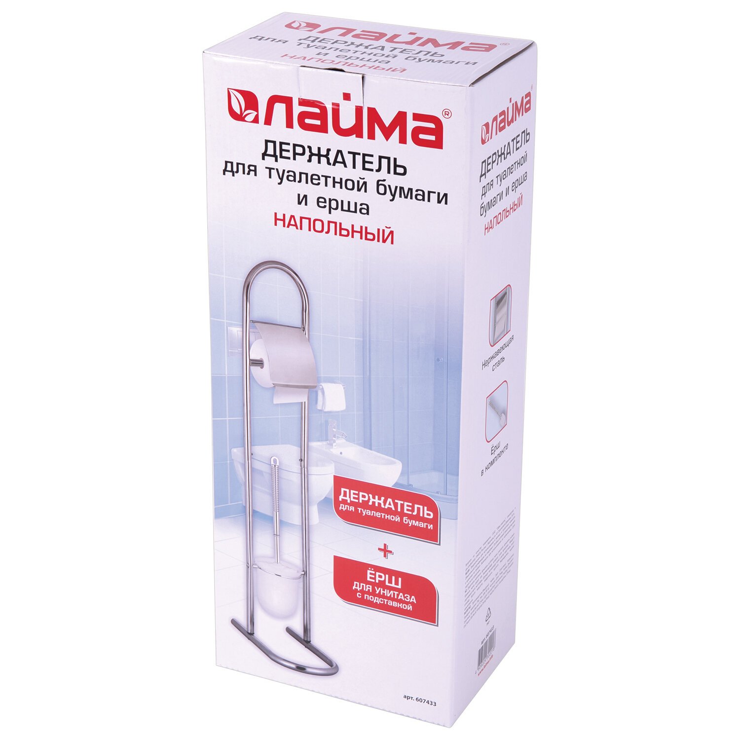 Напольный ерш с держателем для туалетной бумаги LAIMA предназначен для крепления бытовой туалетной бумаги с втулкой. Может использоваться как дома, так и в небольшом офисе.
