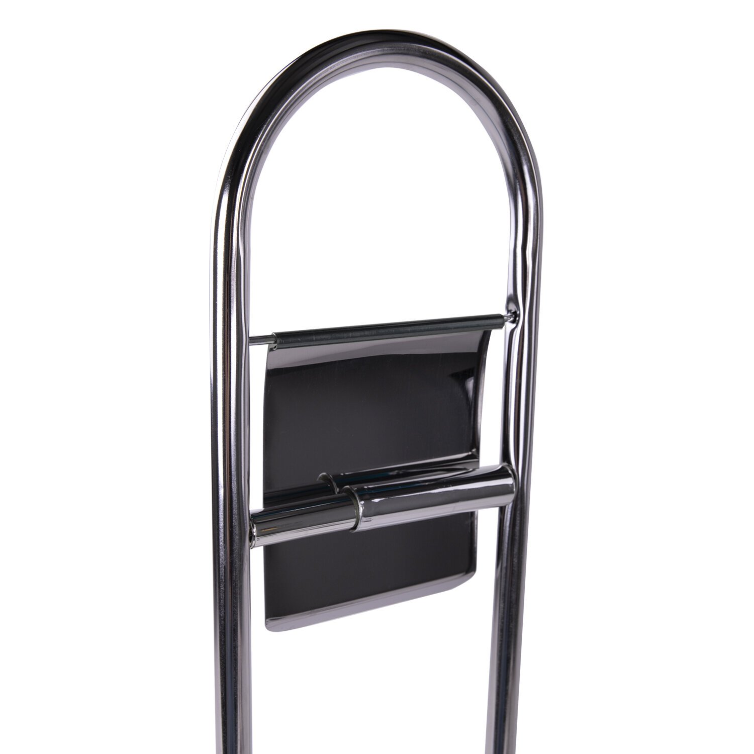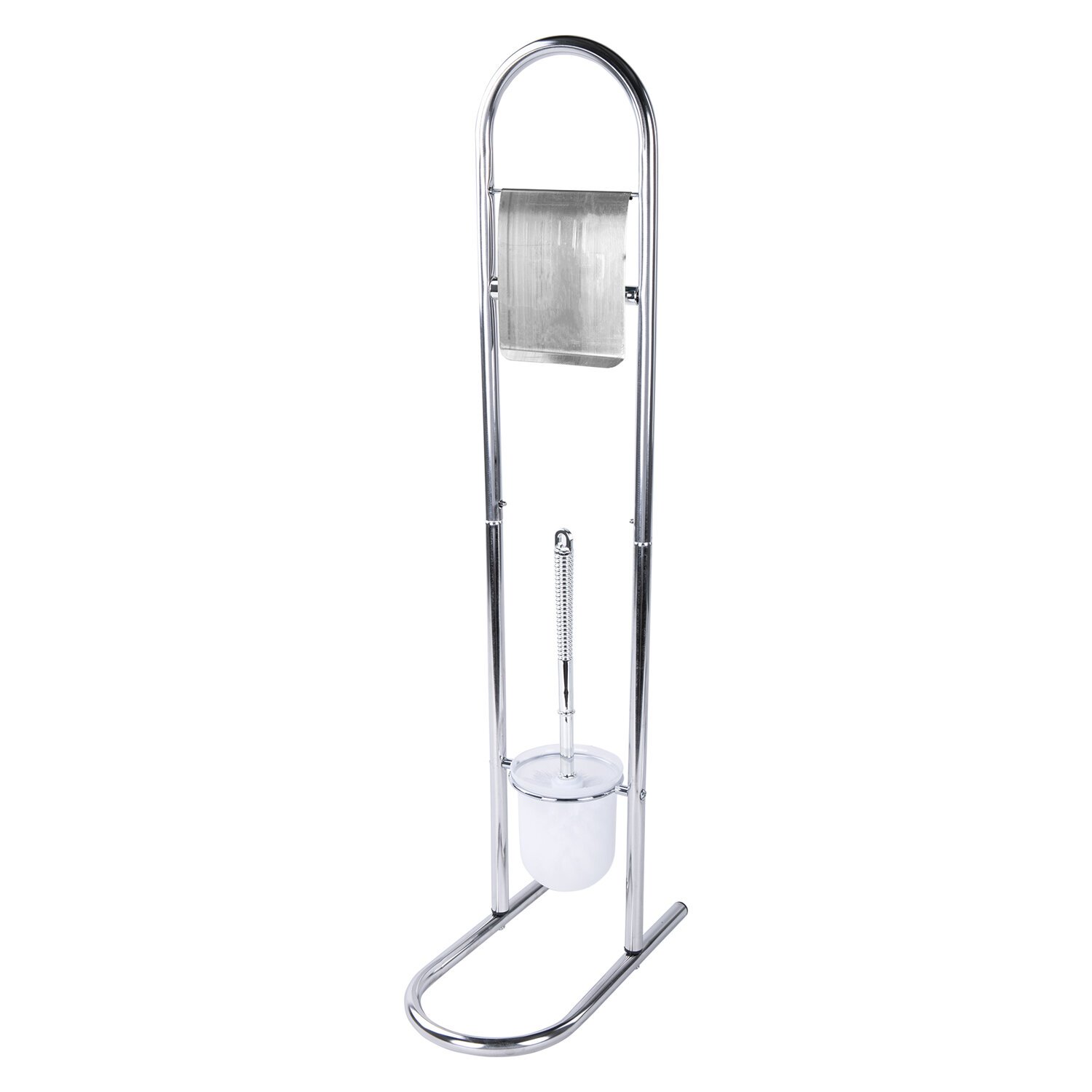 Изделие представляет собой эргономичную напольную стойку с держателем для туалетной бумаги и подставкой для ершика. Стойка и держатель для туалетной бумаги изготовлены из хромированной стали. Ершик и подставка для ершика изготовлены из пластика. Ершик входит в комплект. Размер - 160х785х300 мм.