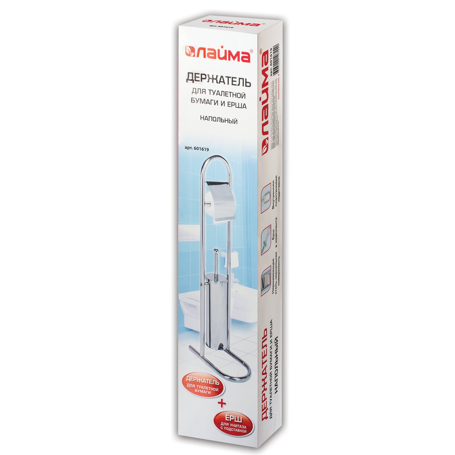 Стойка напольная ерш с подставкой + держатель туалетной бумаги, сталь, зеркальный LAIMA, 601619
