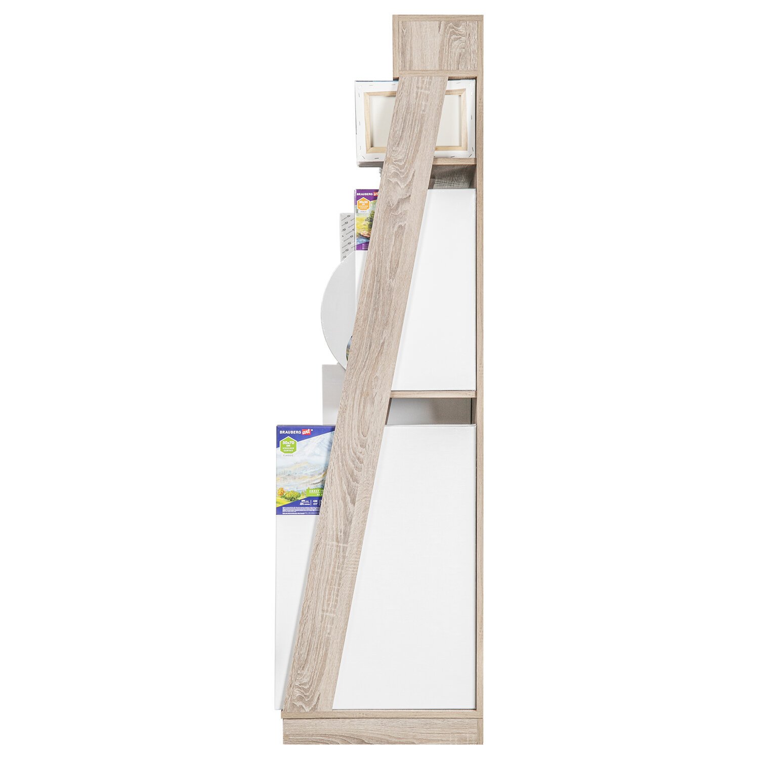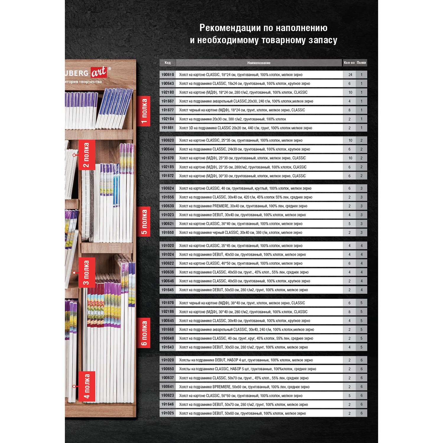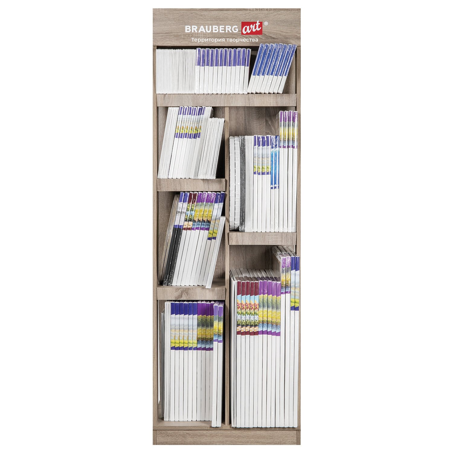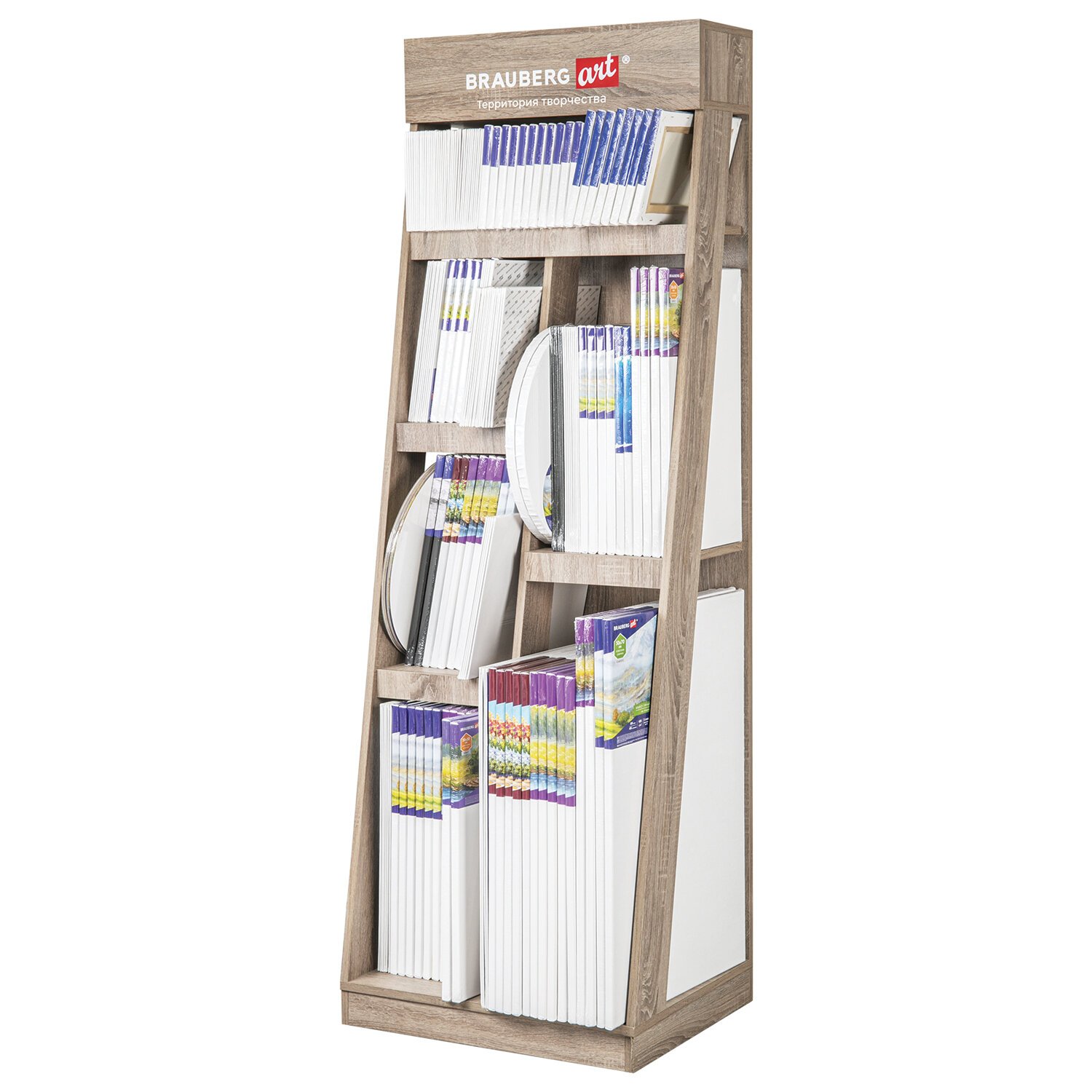 Стильная и вместительная фирменная стойка BRAUBERG ART позволит выгодно разместить холсты высотой до 70 см и повысить объем продаж.