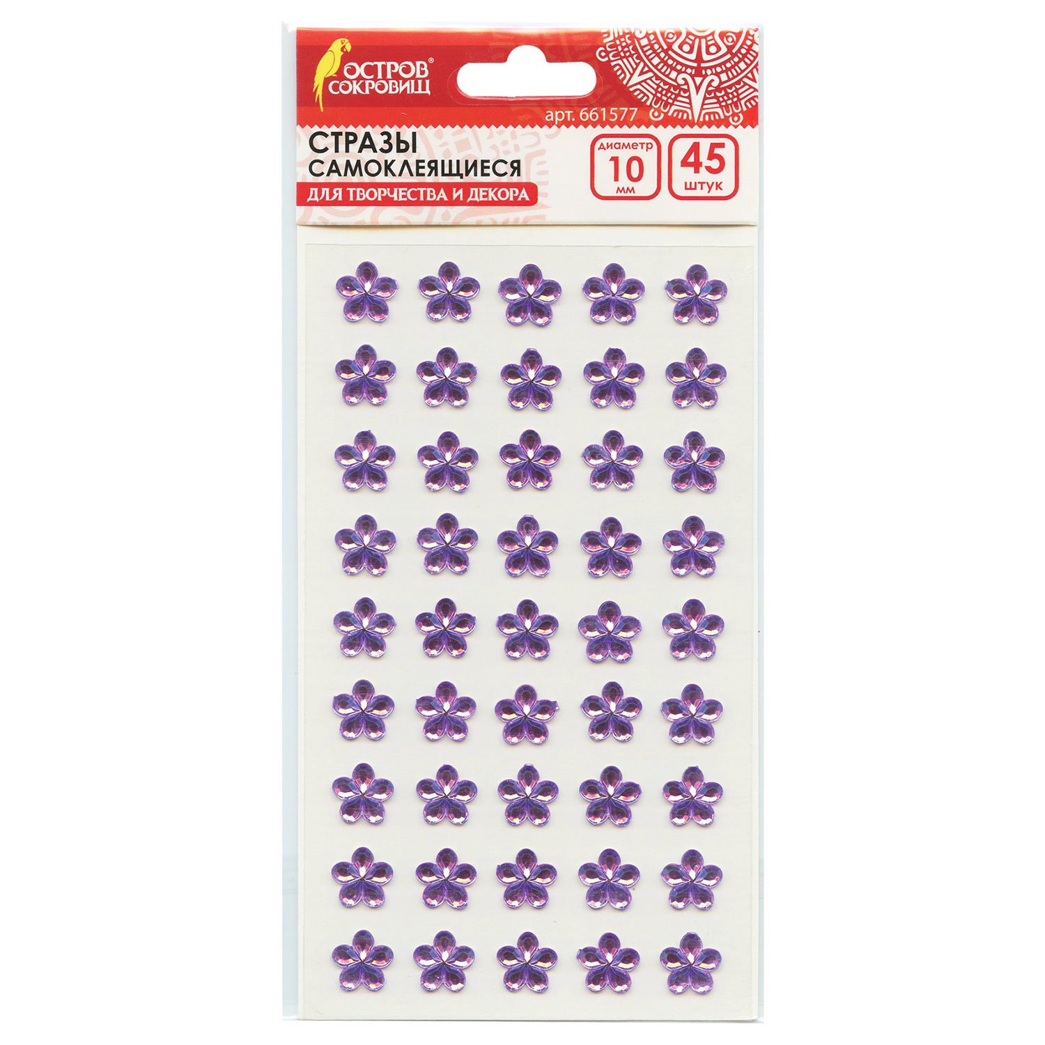 Стразы самоклеящиеся "Цветы", розовые, 10 мм, 45 шт., на подложке, ОСТРОВ СОКРОВИЩ, 661577