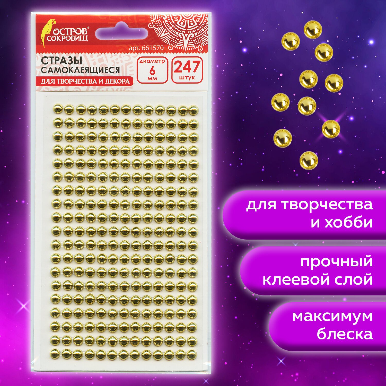 Стразы самоклеящиеся "Круглые", цвет золото, 6 мм, 247 шт., на подложке, ОСТРОВ СОКРОВИЩ, 661570