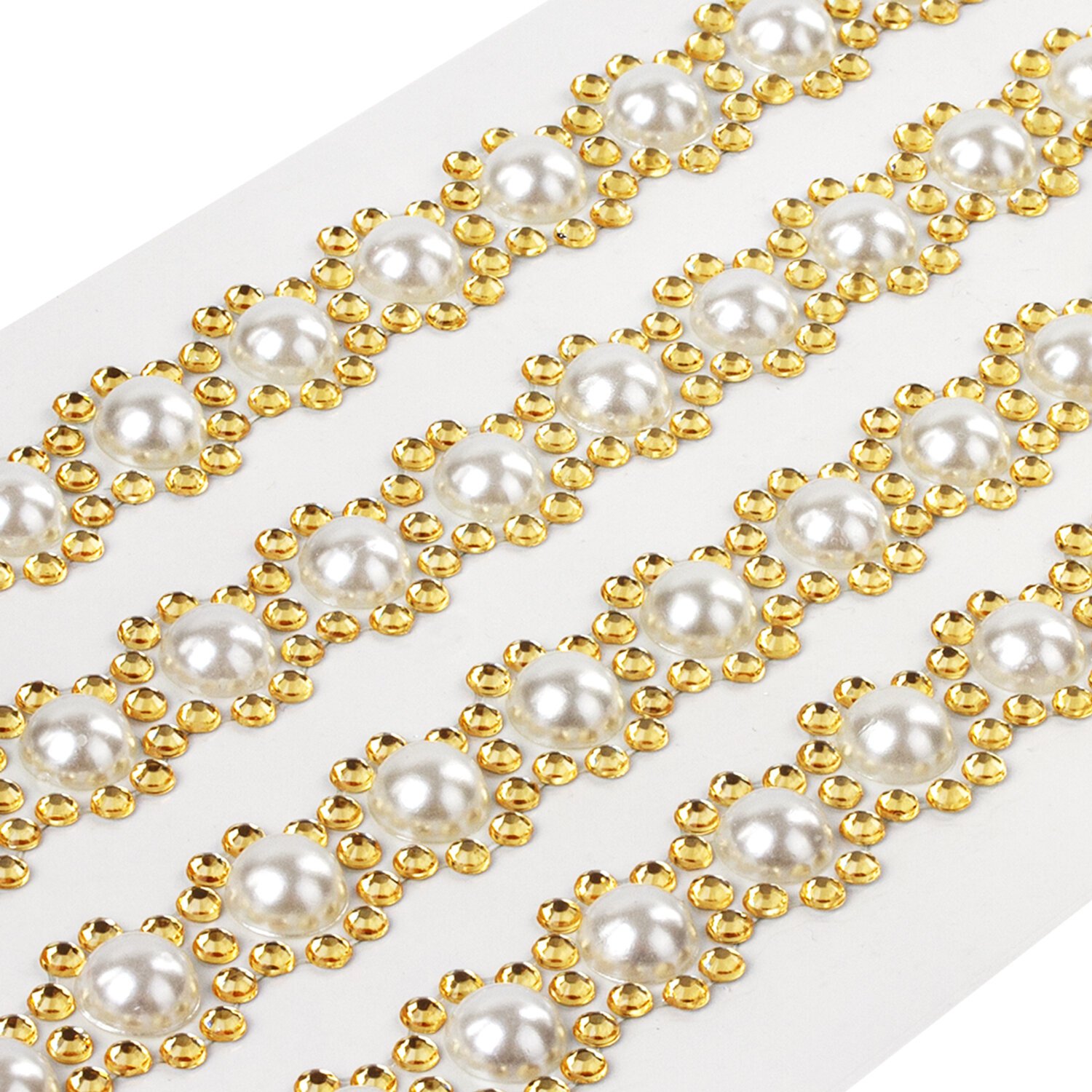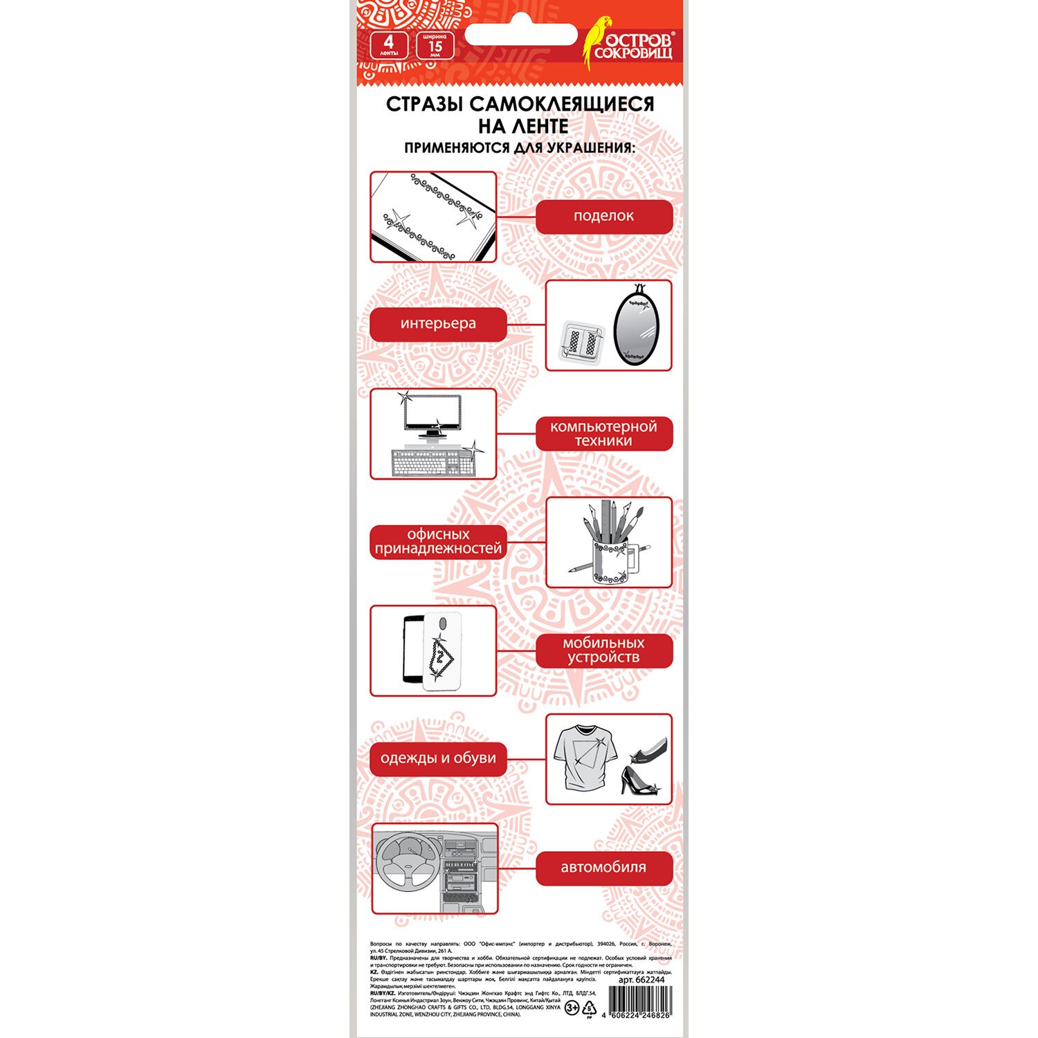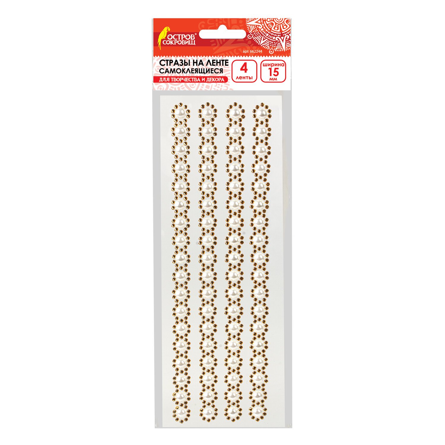 Стразы самоклеящиеся на ленте "ЖЕМЧУЖНЫЕ", 15 мм, 4 ленты, на подложке, ОСТРОВ СОКРОВИЩ, 662244