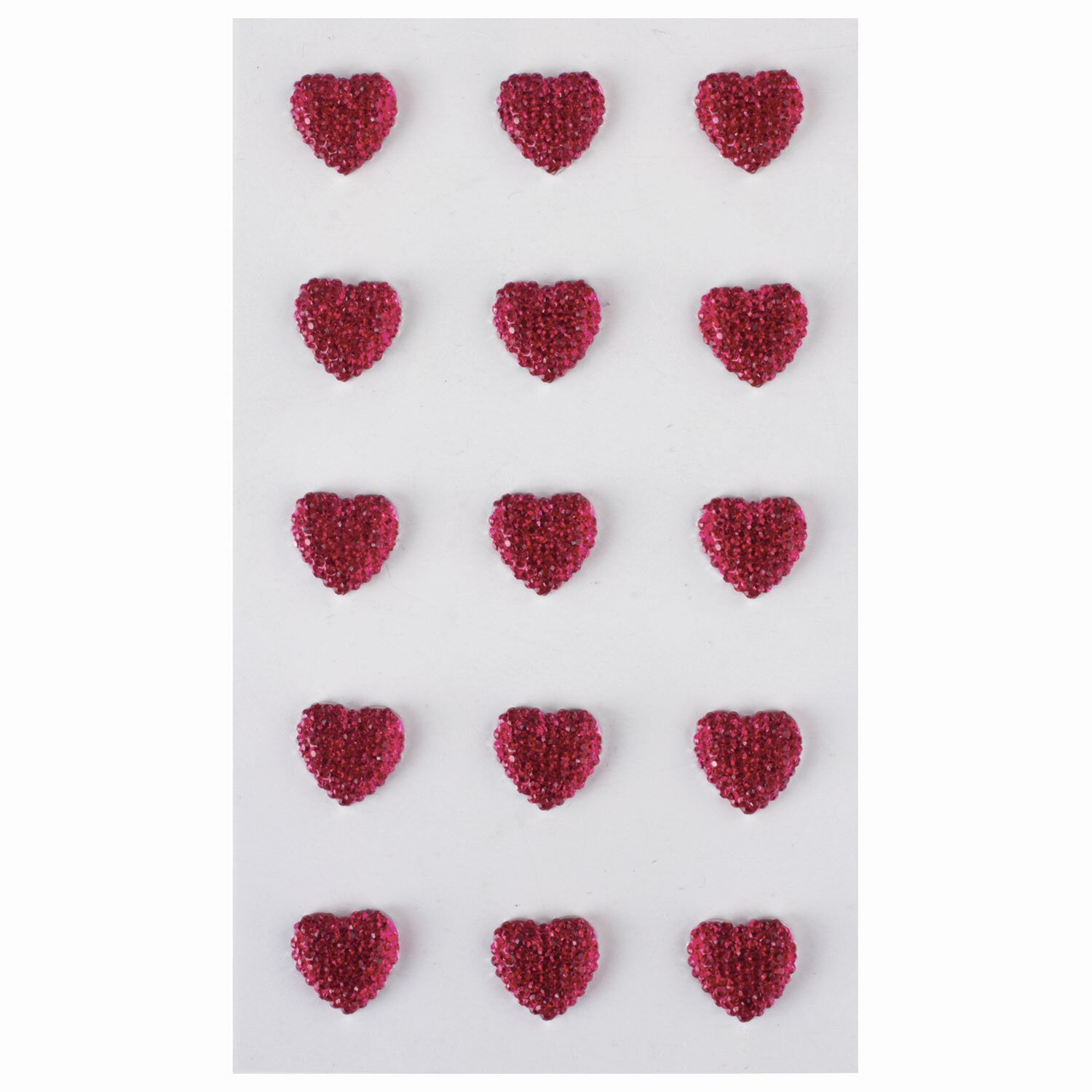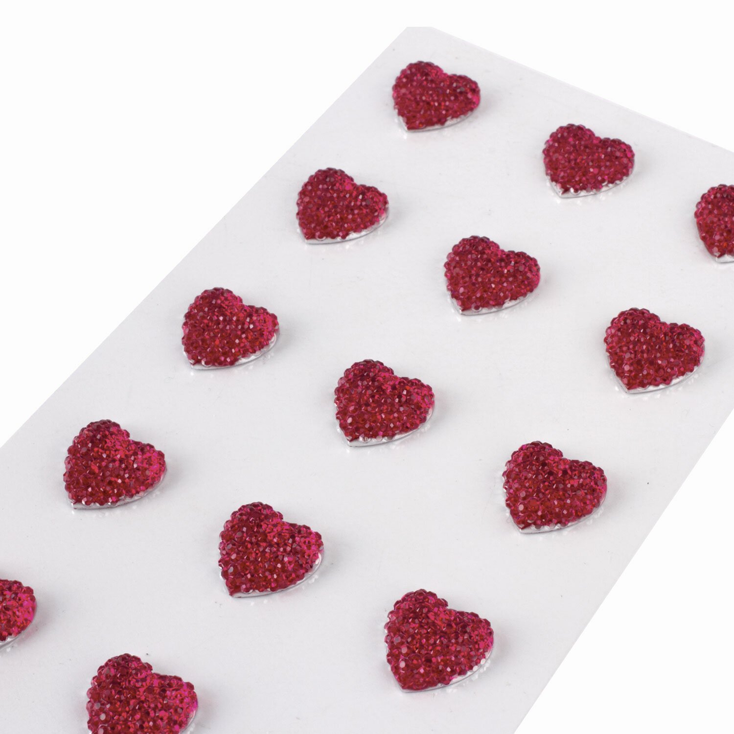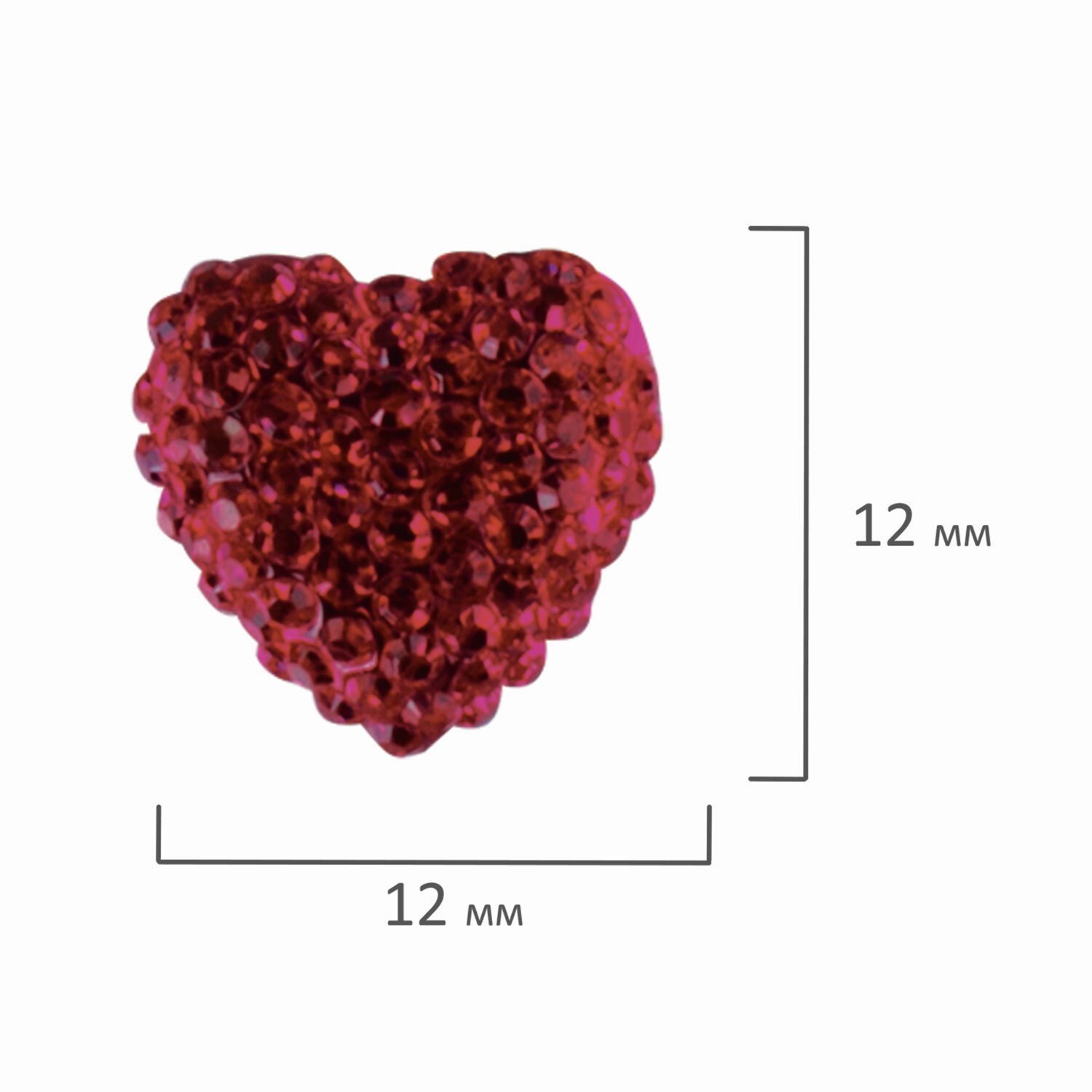 Самоклеящиеся стразы в форме сердец размеров 12 мм насыщенного малинового цвета предназначены для украшения различных изделий. В упаковке содержится 15 страз, каждый из которых как будто состоит из множества сверкающих кристаллов.