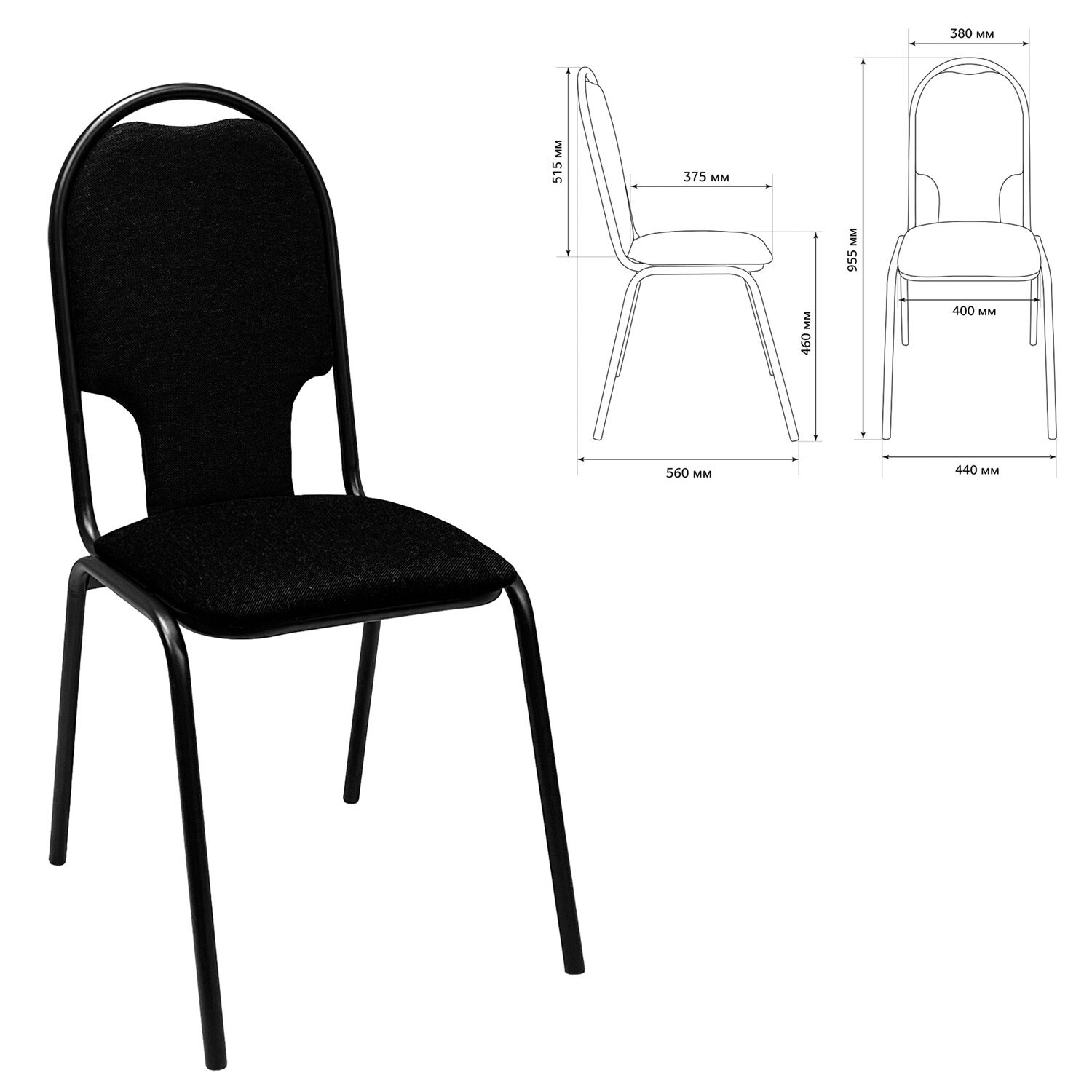 Стул для посетителей РС02М, черный каркас, ткань черная
