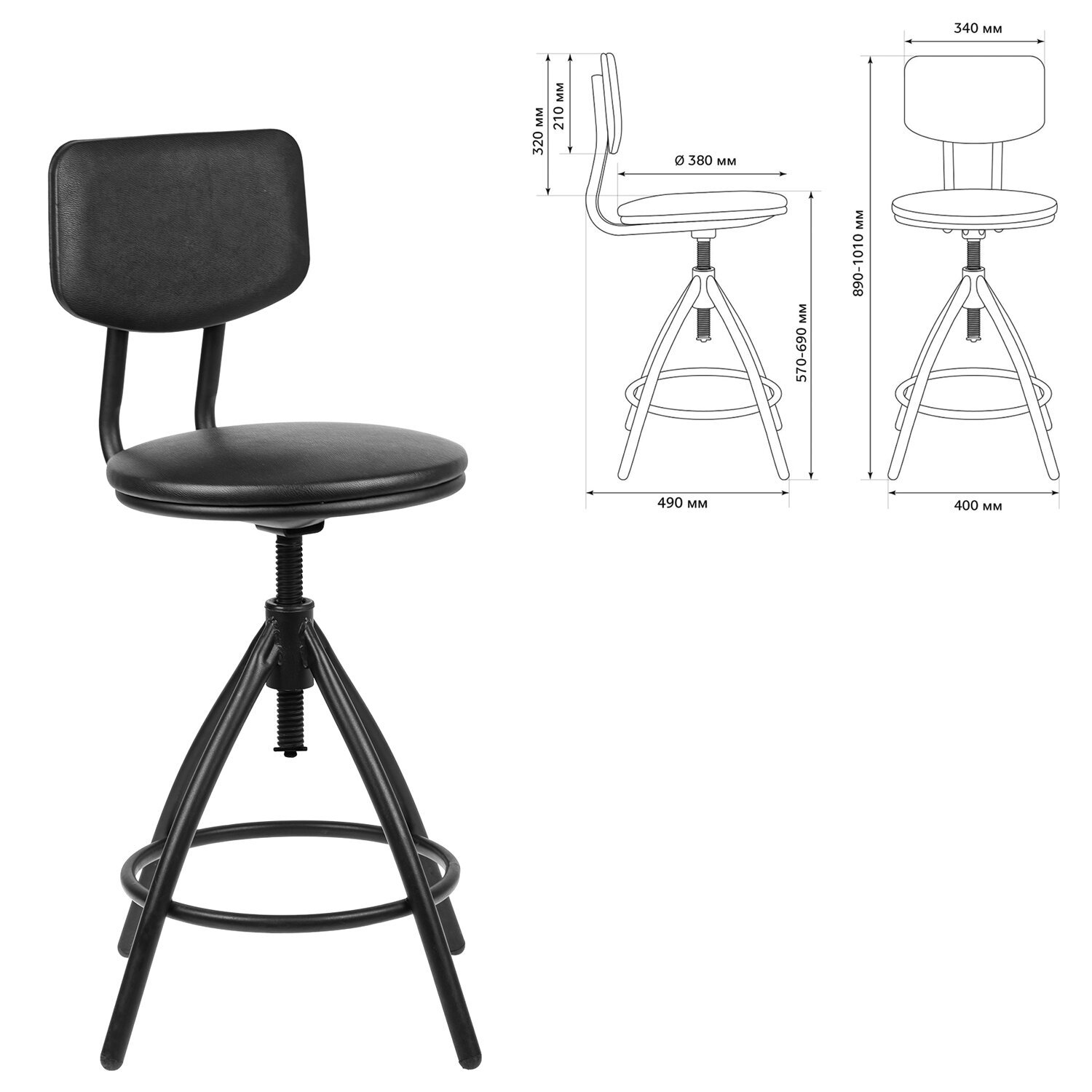 Стул кресло кассира, ресепшен РС37, на винте, без подлокотников, кожзам, черное