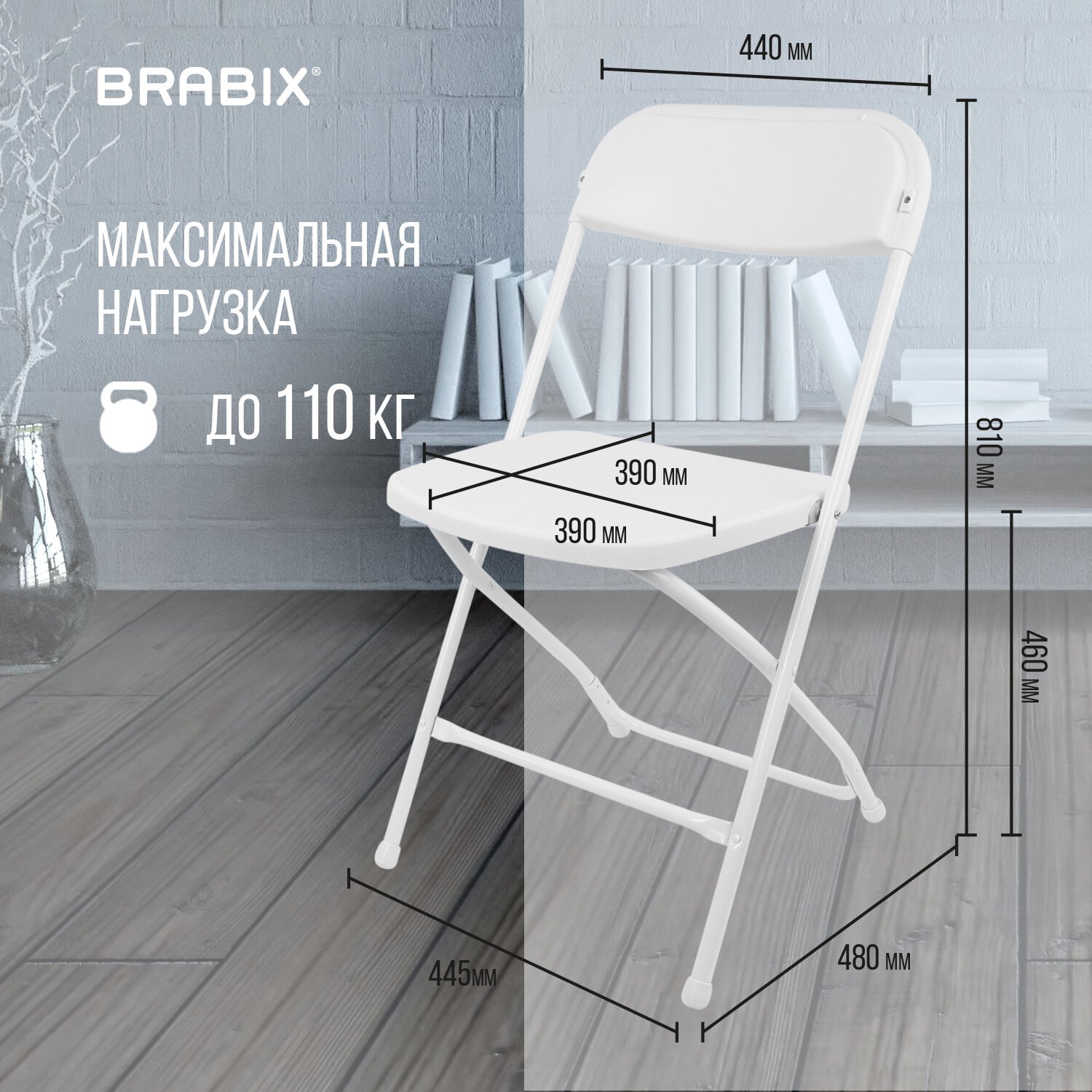 Прочная рама из металла толщиной 1,2 мм обеспечит долговечность эксплуатации, а пластиковые насадки на ножках не дадут испортить напольное покрытие. Модель имеет пластиковую спинку с эргономичным профилем. Складная конструкция сэкономит место при перевозке и хранении. Стул способен выдерживать нагрузку до 110 кг.