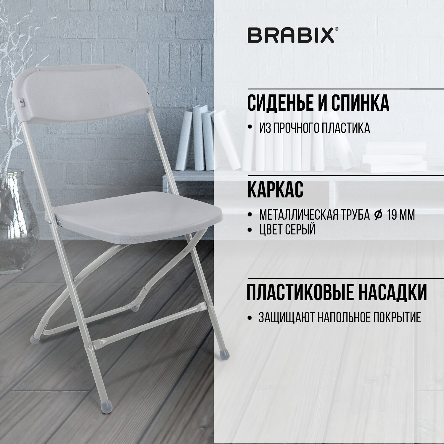 Стул складной BRABIX "Golf CF-002", серый каркас, пластик серый, 531564