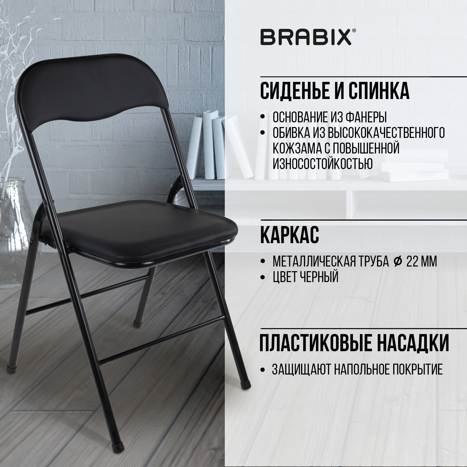 Стул складной BRABIX "Golf CF-007", черный каркас, кожзам черный, 531565