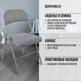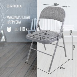 Стул складной BRABIX "Golf Plus CF-003 КОМФОРТ", серый каркас, серая ткань, 532890