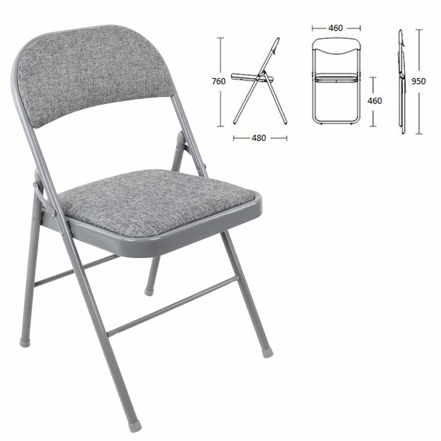 Материал обивки - высококачественная ткань с повышенной износостойкостью. Складная конструкция сэкономит место при перевозке и хранении. Прочная металлическая рама и металлическое основание сиденья обеспечат долговечность эксплуатации, а пластиковые насадки на ножках не дадут испортить напольное покрытие. В набивке спинки и сиденья использован поролон высокой плотности. Стул способен выдерживать нагрузку до 110 кг.