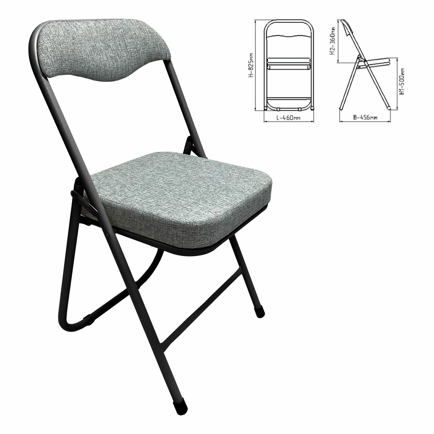Стул складной для дома и офиса РС04К комфорт, черный каркас, рогожка светло-серая