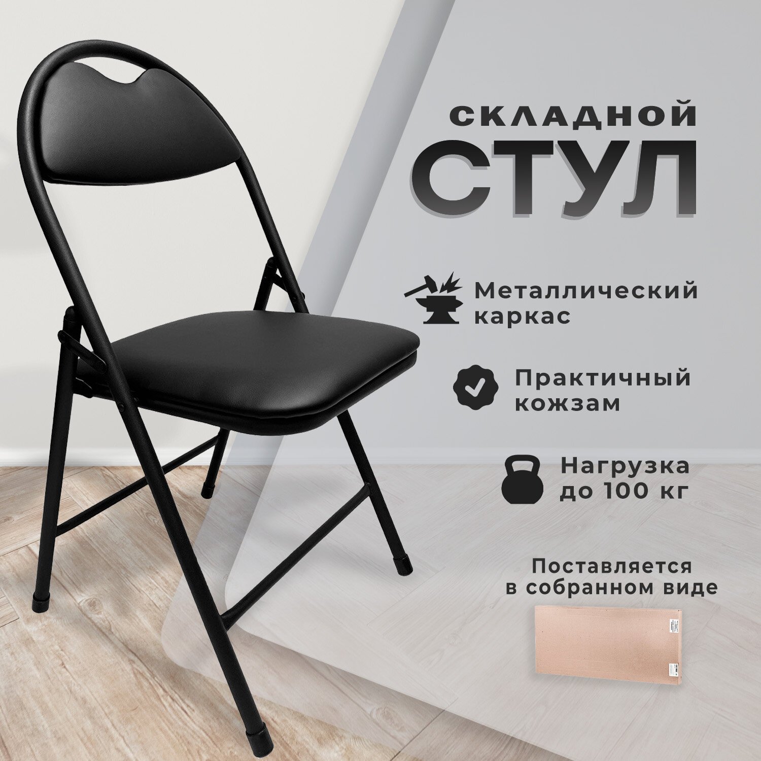 Стул складной для дома и офиса РС94, черный каркас, экокожа черный