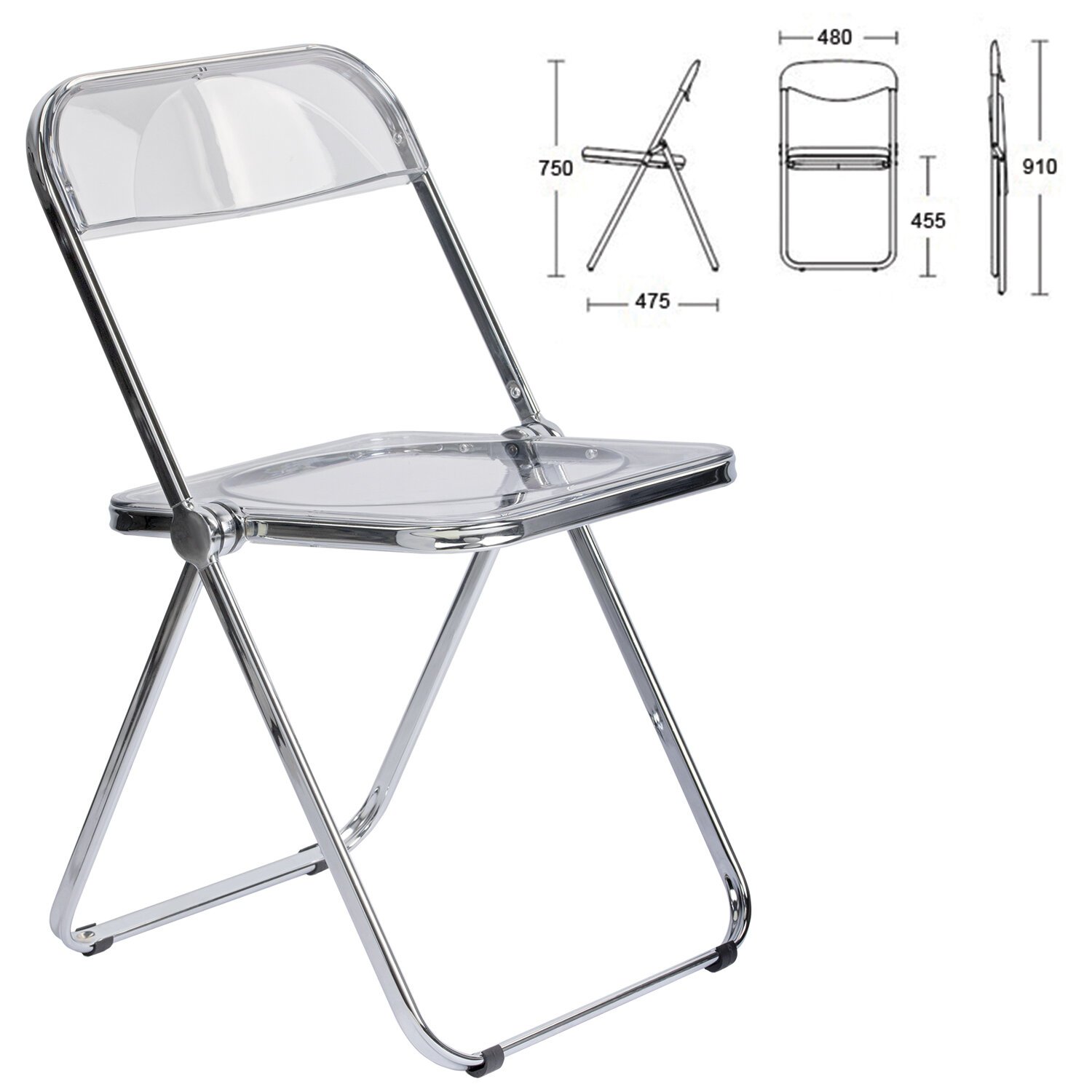 Стул складной прозрачный BRABIX "Glam CF-020", хромированный каркас, пластик, 533245