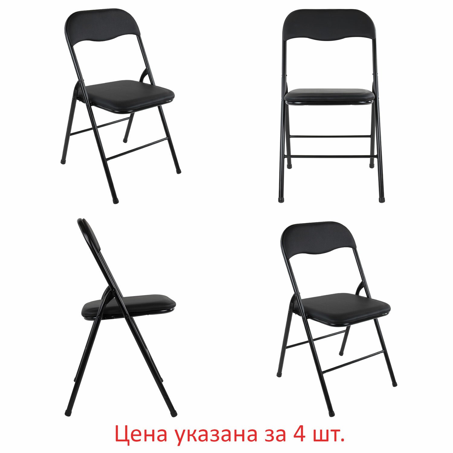 Стулья складные BRABIX "Golf CF-007", КОМПЛЕКТ 4 шт., черный каркас, кожзам черный, 533032