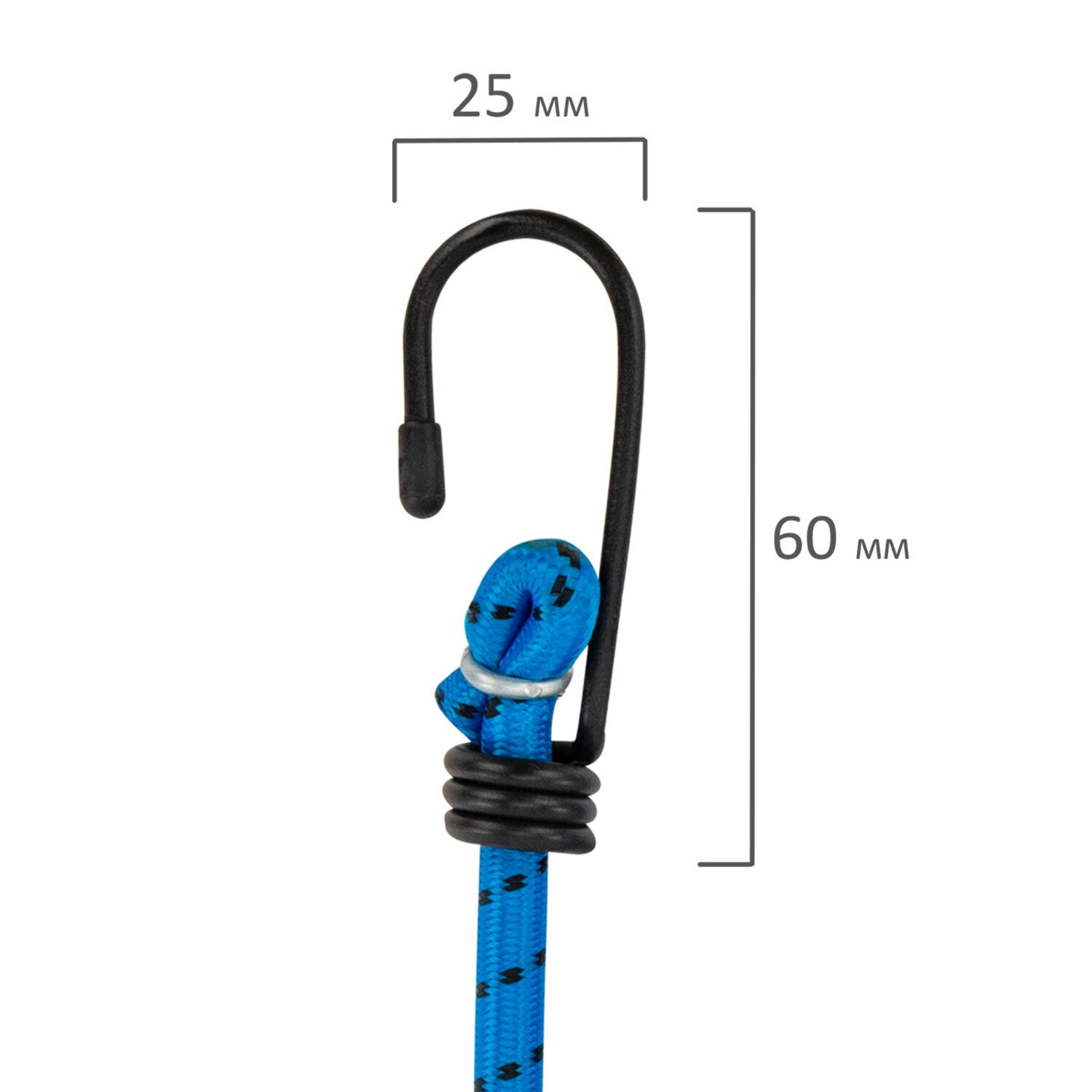 Эластичный материал стяжки надежно удерживает предметы разного размера. Металлические крючки позволяют быстро зафиксировать стяжку без узлов и сложных креплений.