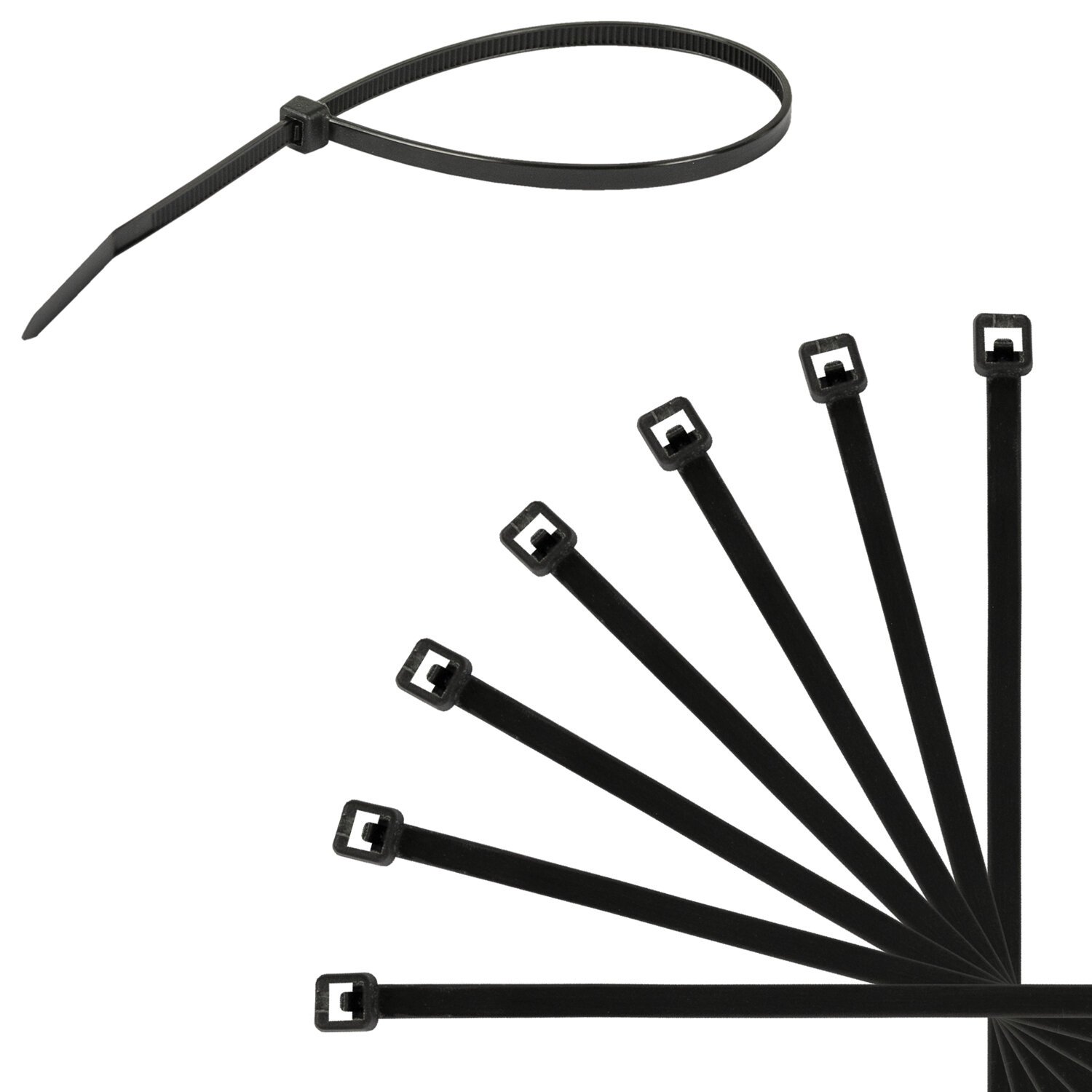 Стяжки (хомуты) представляют собой тонкую, эластичную полоску из нейлона высокой прочности (PA 6.6) с замком на конце. Благодаря применению качественного нейлона стяжки (хомуты) сочетают высокую прочность и пластичность, стойкость к перепадам температурного режима и уровня влажности воздуха.