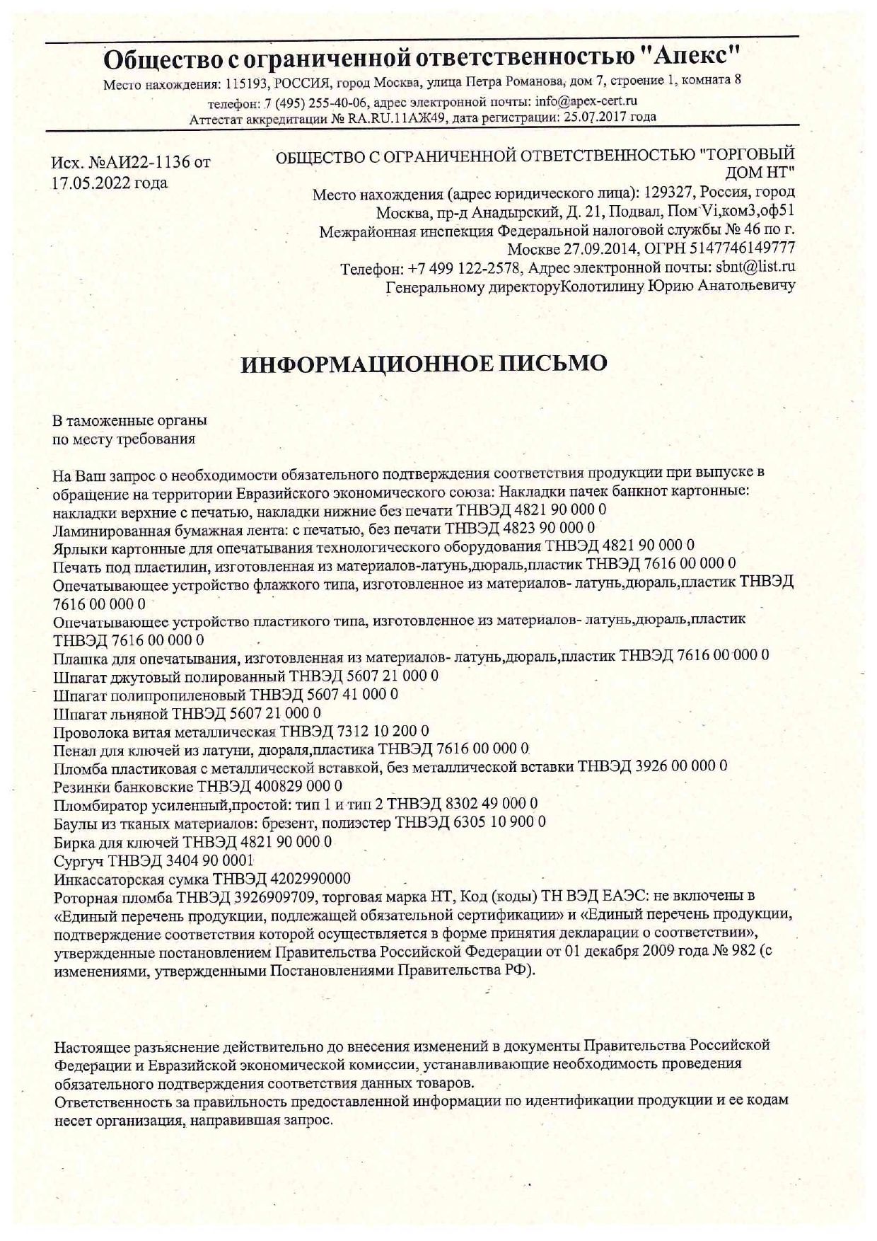 Бандероли кольцевые, комплект 500 шт., номинал 5000 руб.