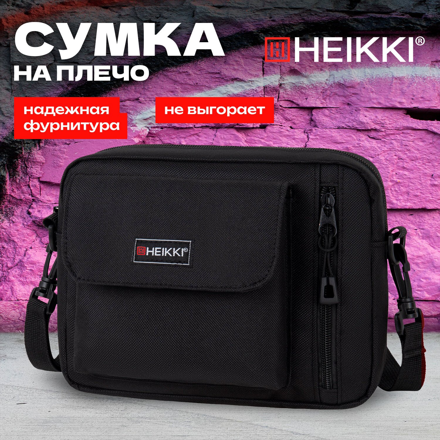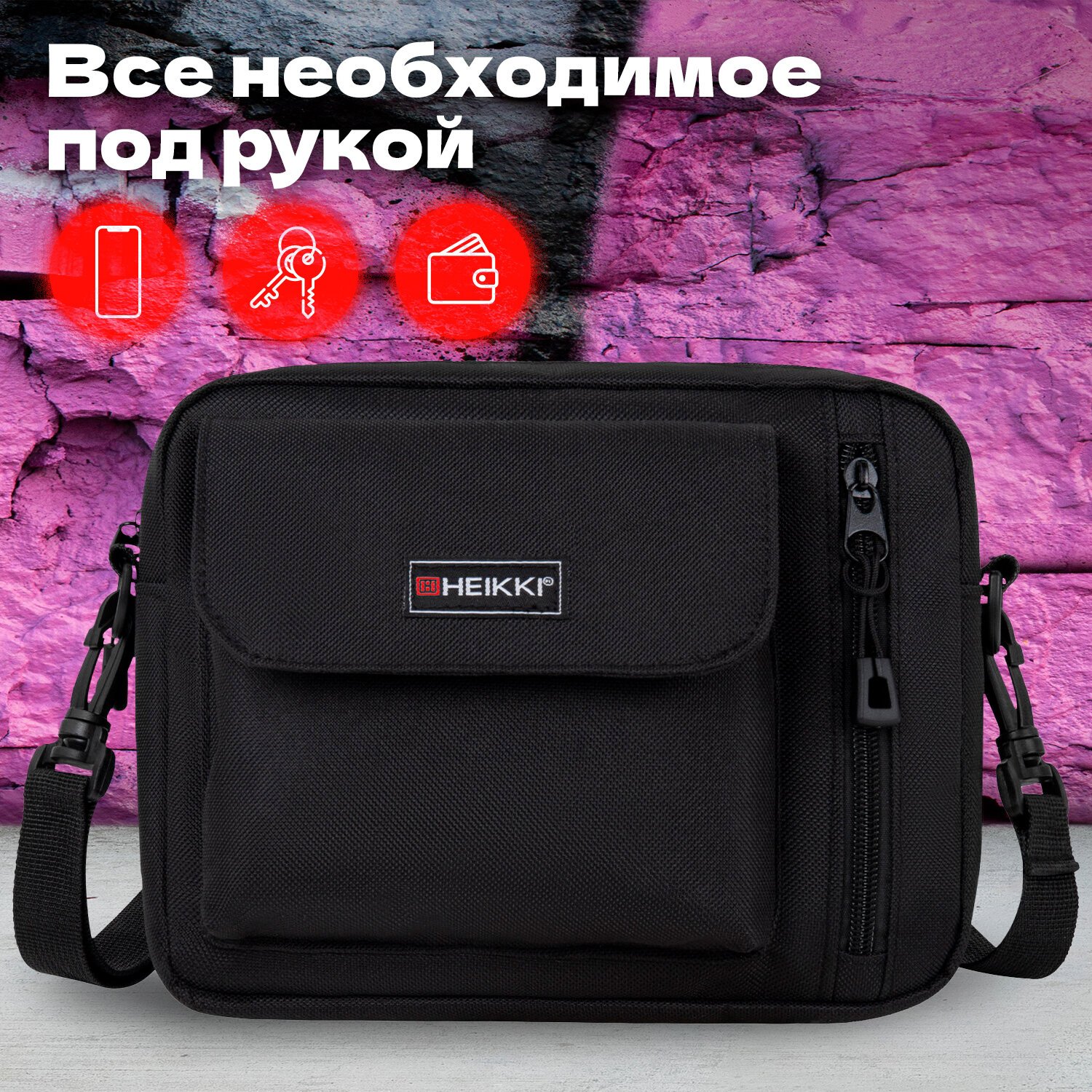 Сумка на плечо HEIKKI BLASTER (ХЕЙКИ) с карманом, черная, 20х14х5 см, 272634