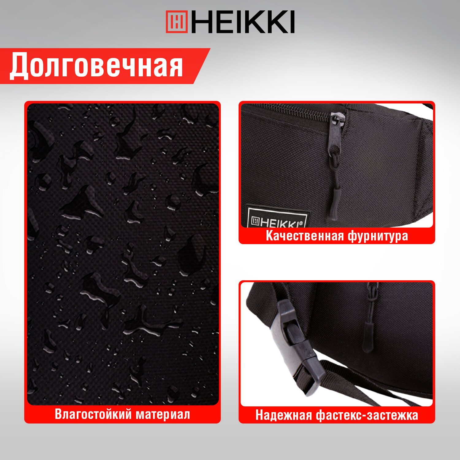 Сумка на пояс HEIKKI RIO (ХЕЙКИ), два отделения, регулируемый ремень, черная, 38х12х8 см, 272614