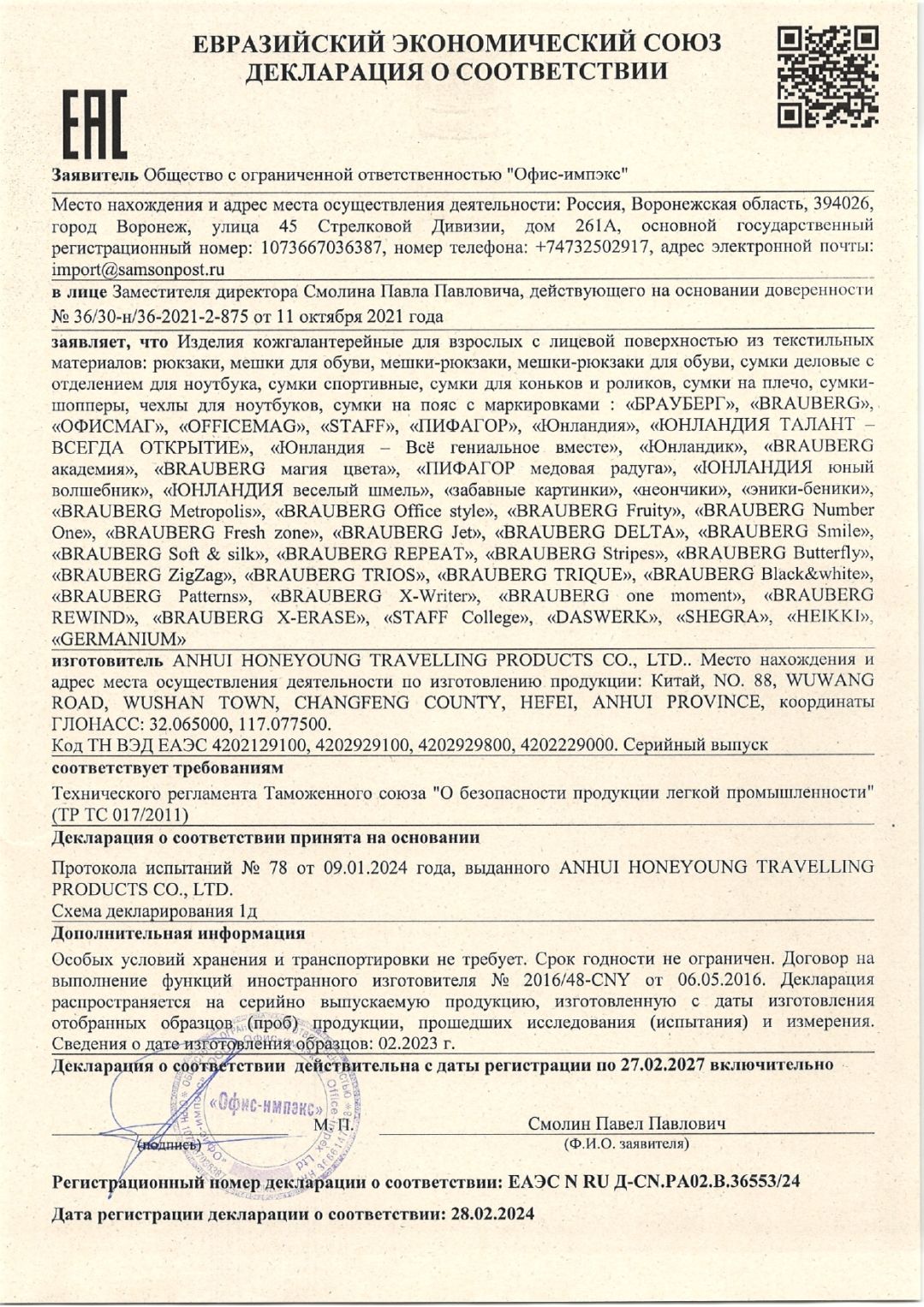 Сумка упакована в плотный ПЭТ пакет, который сохранит качество и товарный вид при хранении и транспортировке.