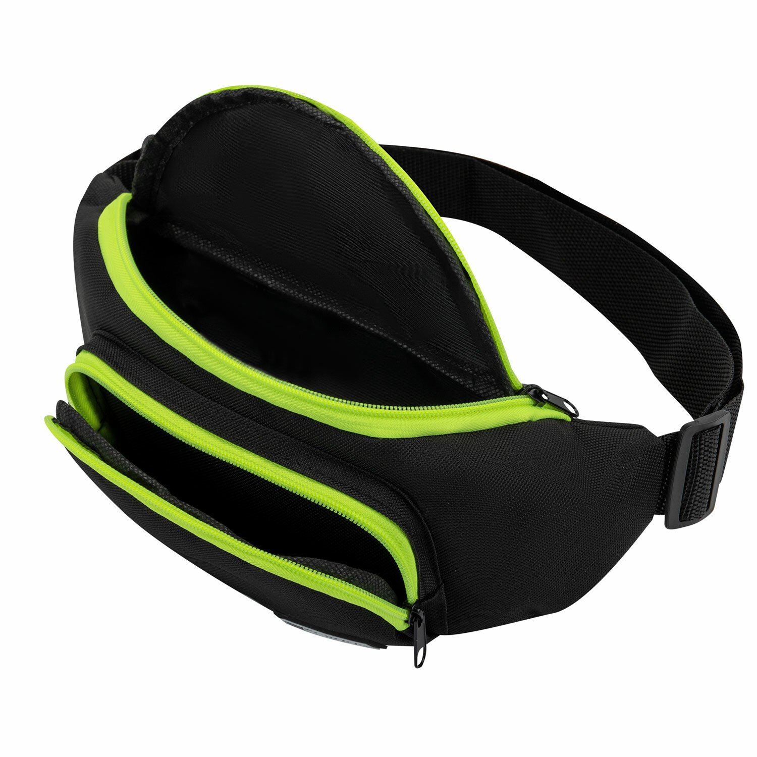 Сумка на пояс BRAUBERG RIO, карман, регулируемый ремень, черная, салатовые детали, 30х12x10 см, 270823