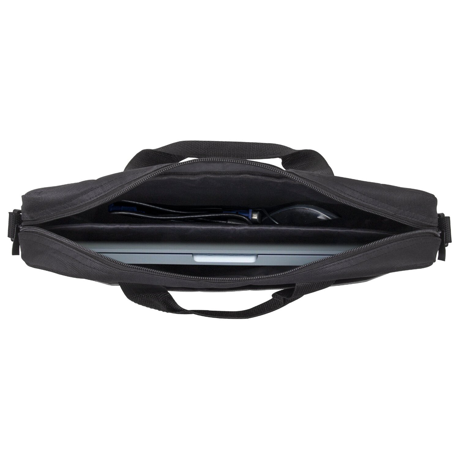 Благодаря перегородке в основном отделении все необходимые для электронного устройства аксессуары, такие как блок питания, мышка и прочее, можно разместить отдельно, что позволит защитить ноутбук от царапин и упорядоченно разложить необходимые предметы. Внешний карман на липучке обеспечивает быстрый доступ к самым необходимым вещам.