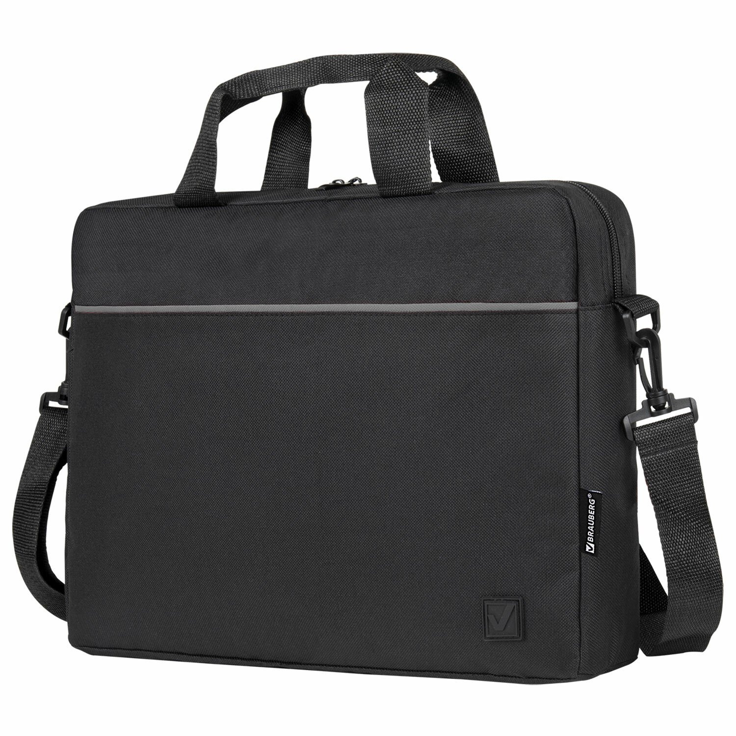Сумка портфель BRAUBERG PRACTICAL с отделением для ноутбука 15,6", Grey line, черная, 29х40х7 см, 272604