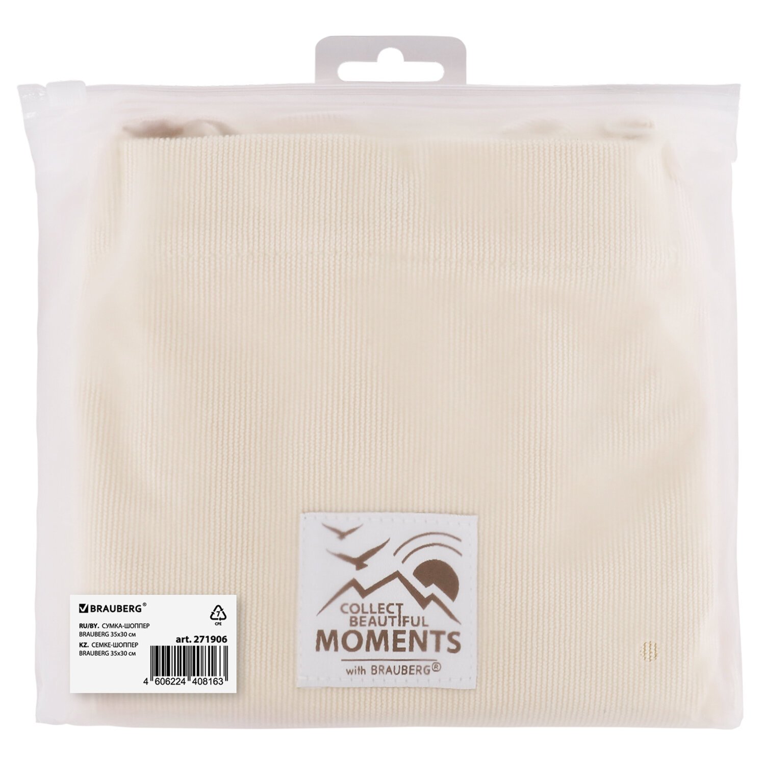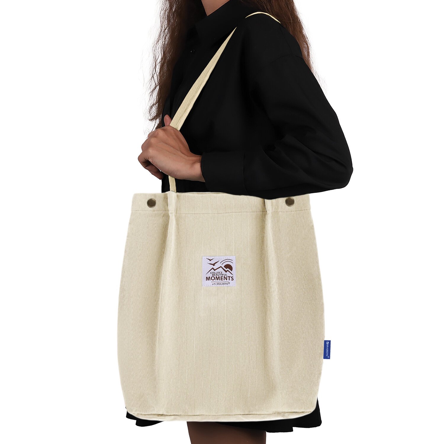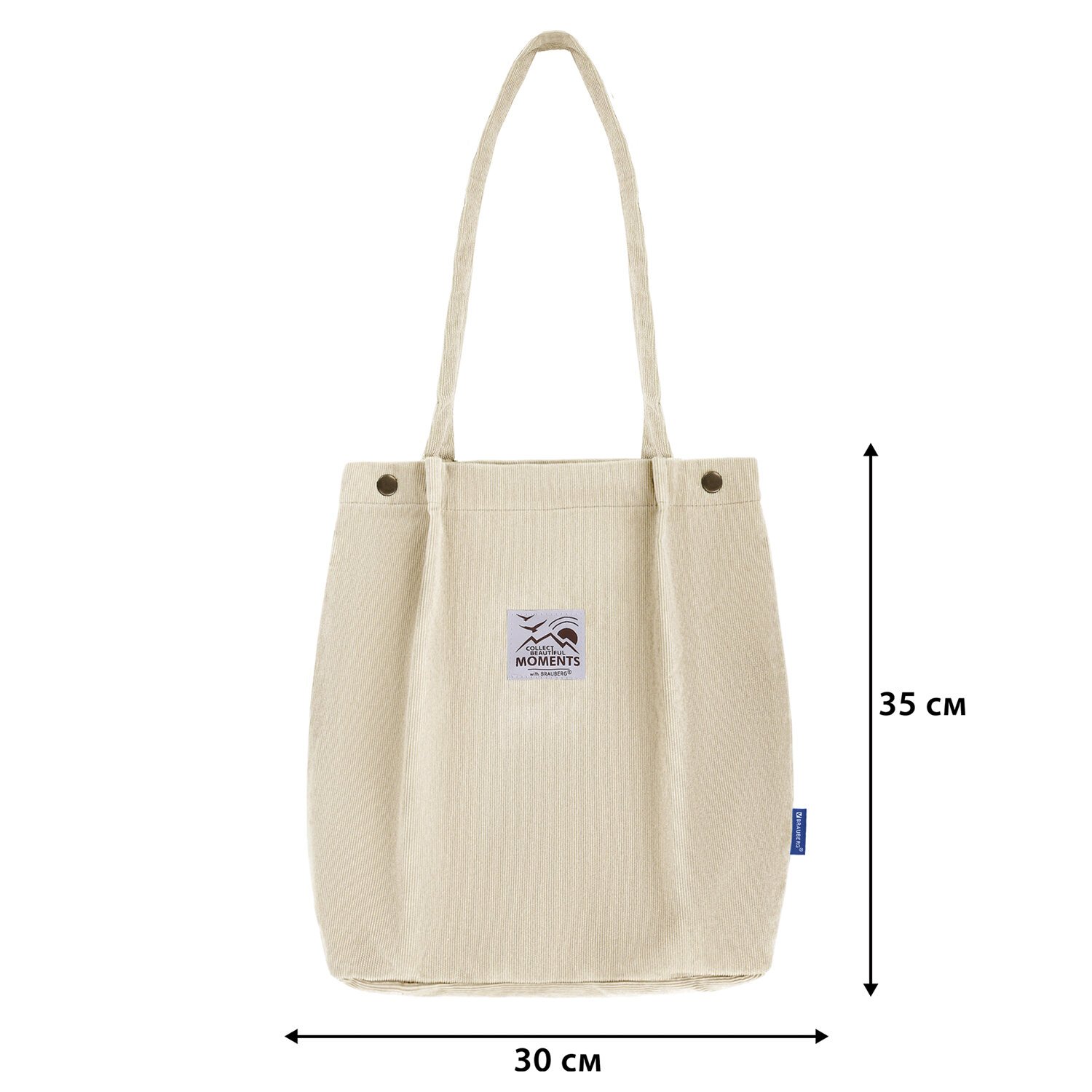 Сумка шоппер BRAUBERG MOMENTS, вельвет, 35х30 см, бежевый, 271906