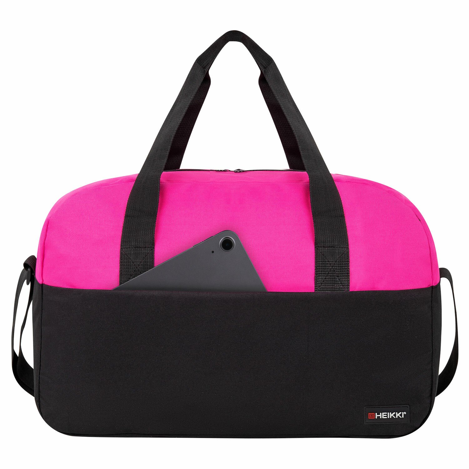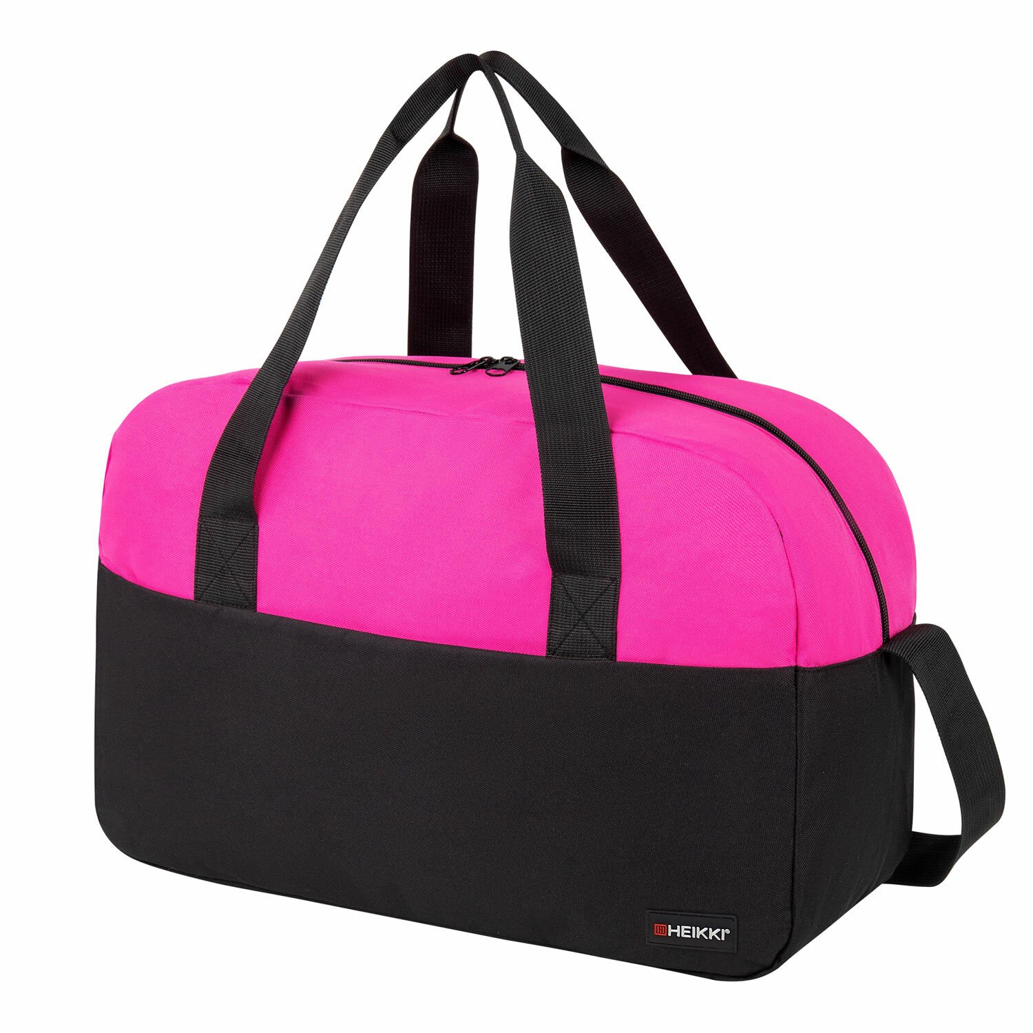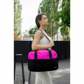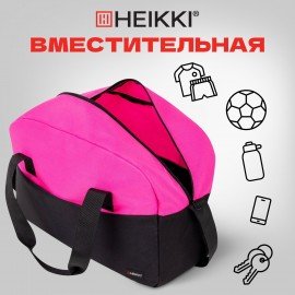 Сумка спортивная HEIKKI BASE (ХЕЙКИ), карман на молнии, черная/фуксия, 30x44x17 см, 272621
