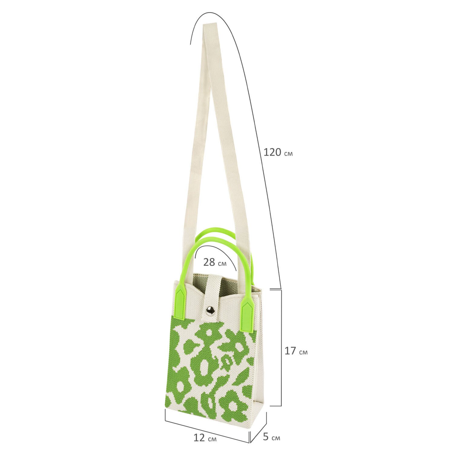 Размер сумочки 17х12 см, компактная, но вместительная. Глубина сумки - 5 см, но благодаря тянущемуся материалу она может расширяться в 2 раза - до 10 см. В нее поместится телефон, кошелек, паспорт, ключи, а также ряд других мелочей, которые всегда должны быть под рукой.