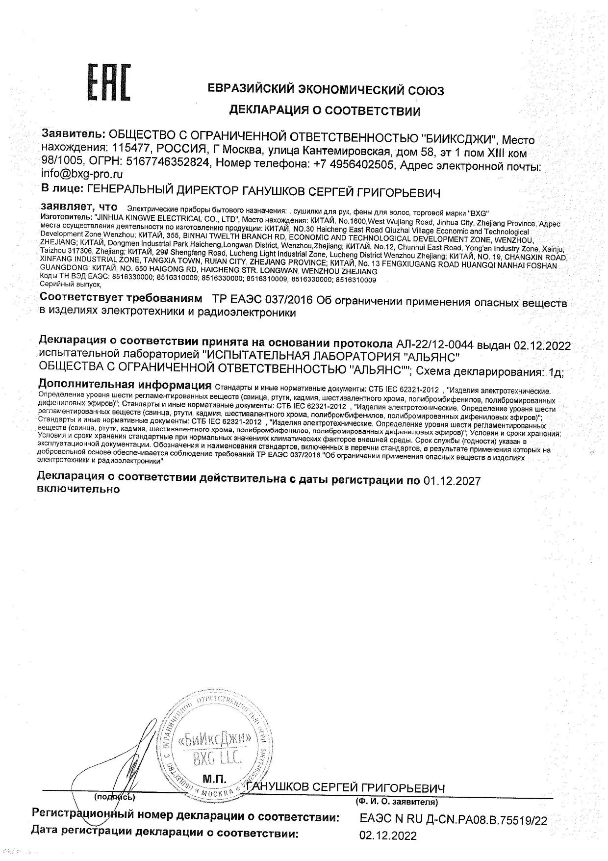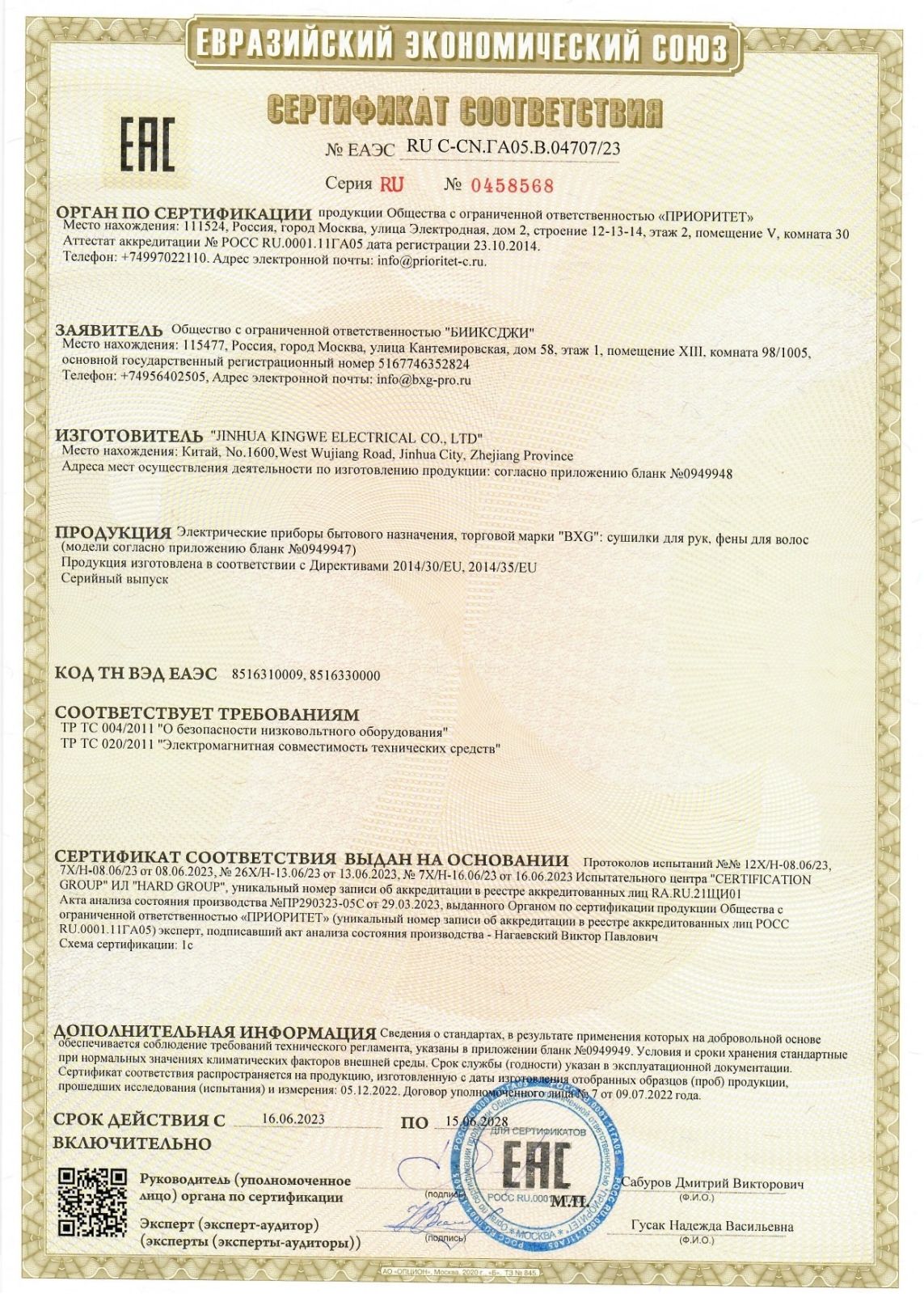 BXG-JET-3100 обладает самым высоким классом влагозащиты IPX4 (исключено попадание влаги вовнутрь устройства со всех сторон) и возможность короткого замыкания или удара электрическим током при правильной эксплуатации исключена. Благодаря ИК-датчикам и технологии микропроцессорного управления осуществляется независимый контроль, который предотвращает слишком долгое использование сушилки или использование не по назначению. Прибор оснащён устройством автоматического отключения на случай перегрева, короткого замыкания или скачков напряжения в электросети.