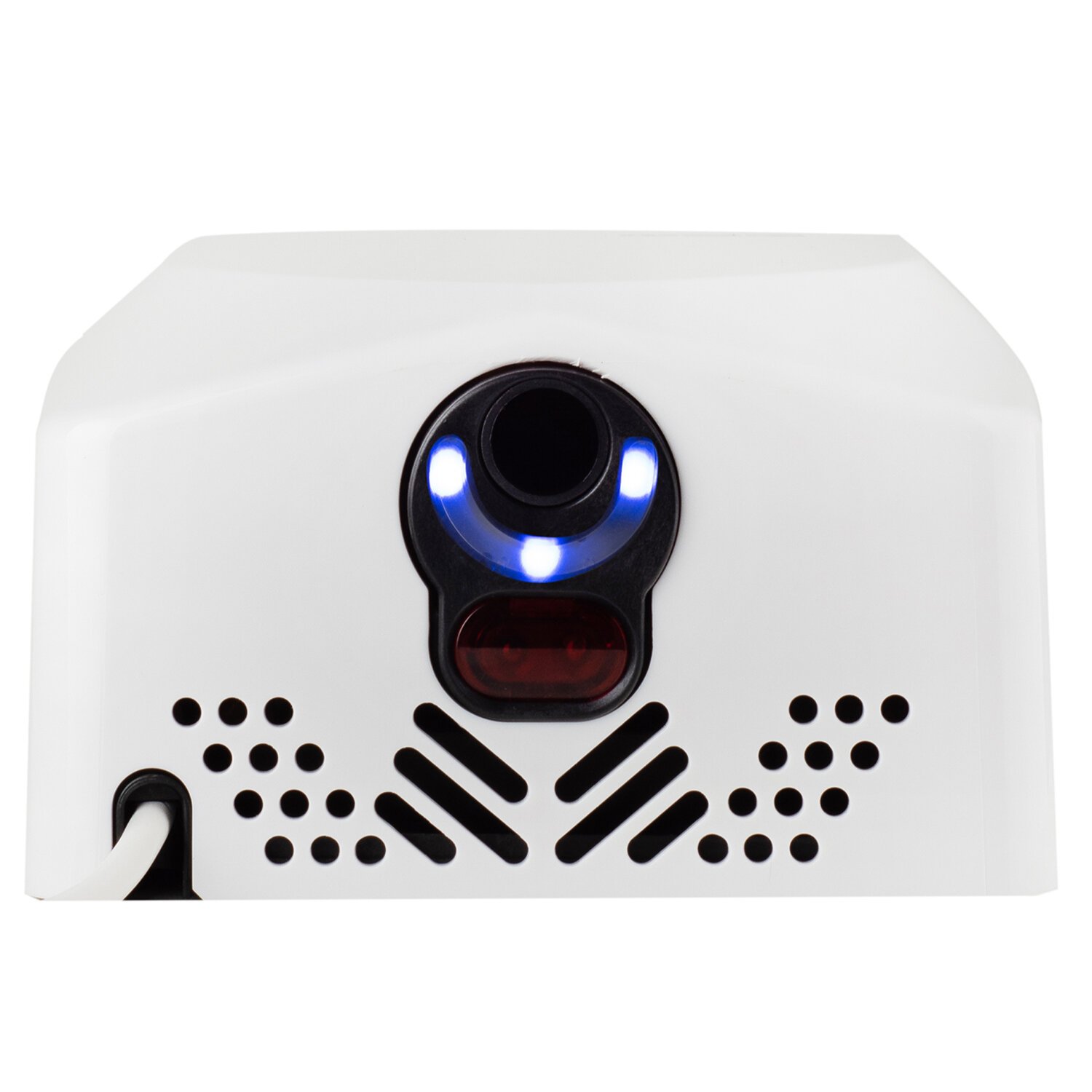 Встроенная система ультрафиолетового излучения одновременно с процессом сушки рук обеззараживает поверхность ладоней. Излучение от УФ светодиодов составляет 395-405 нм, что абсолютно безопасно для человека, но его достаточно для инактивации микроорганизмов (бактерий, вирусов, микробов), находящихся в воздухе туалетной комнаты. Воздух, попадая на руки, проходит через губчатый фильтр из пенополиуретана, который задерживает всю крупно- и мелкодисперсную пыль туалетной комнаты.