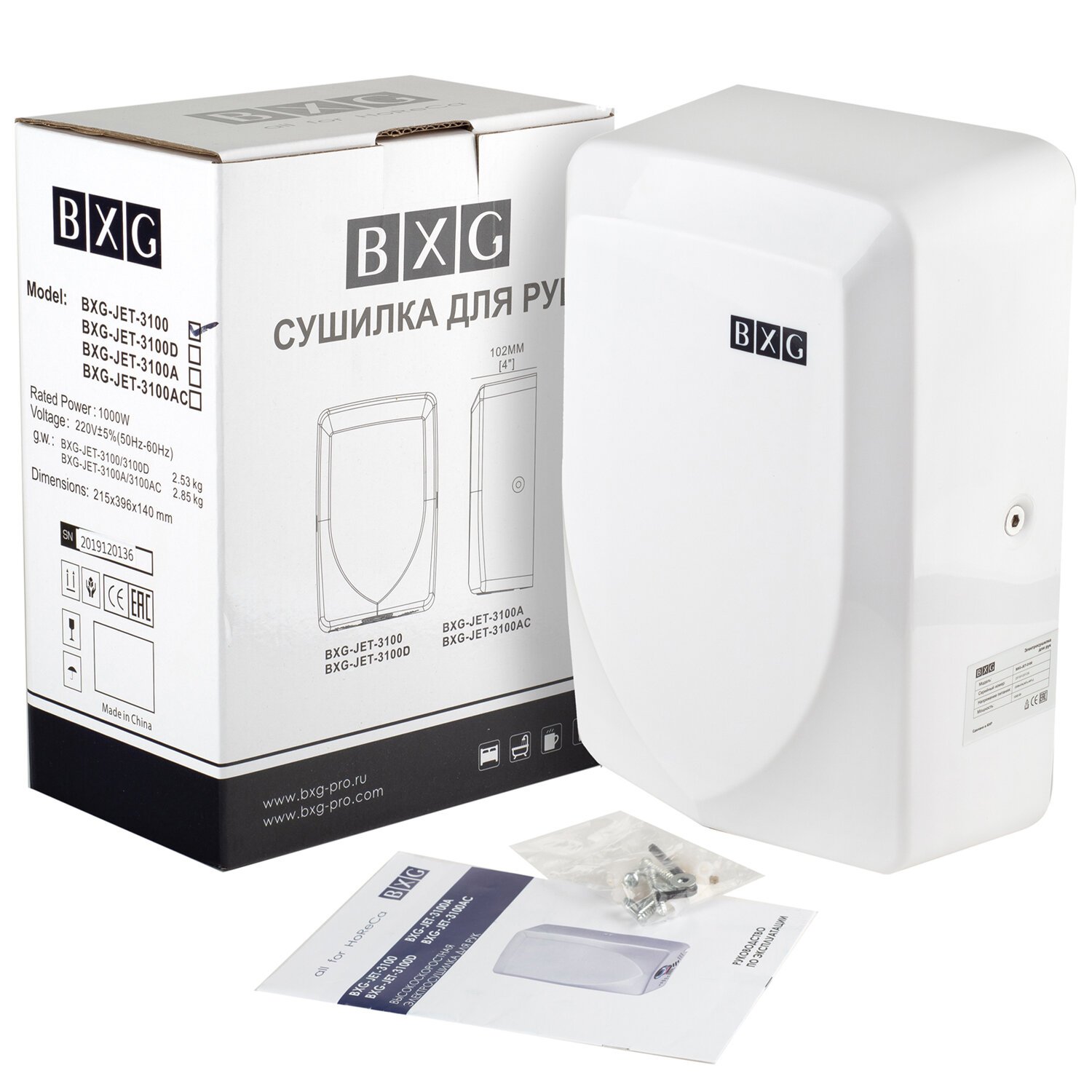 Сушилка для рук BXG-JET-3100, 1000 Вт, ультрафиолет, пластик, белая
