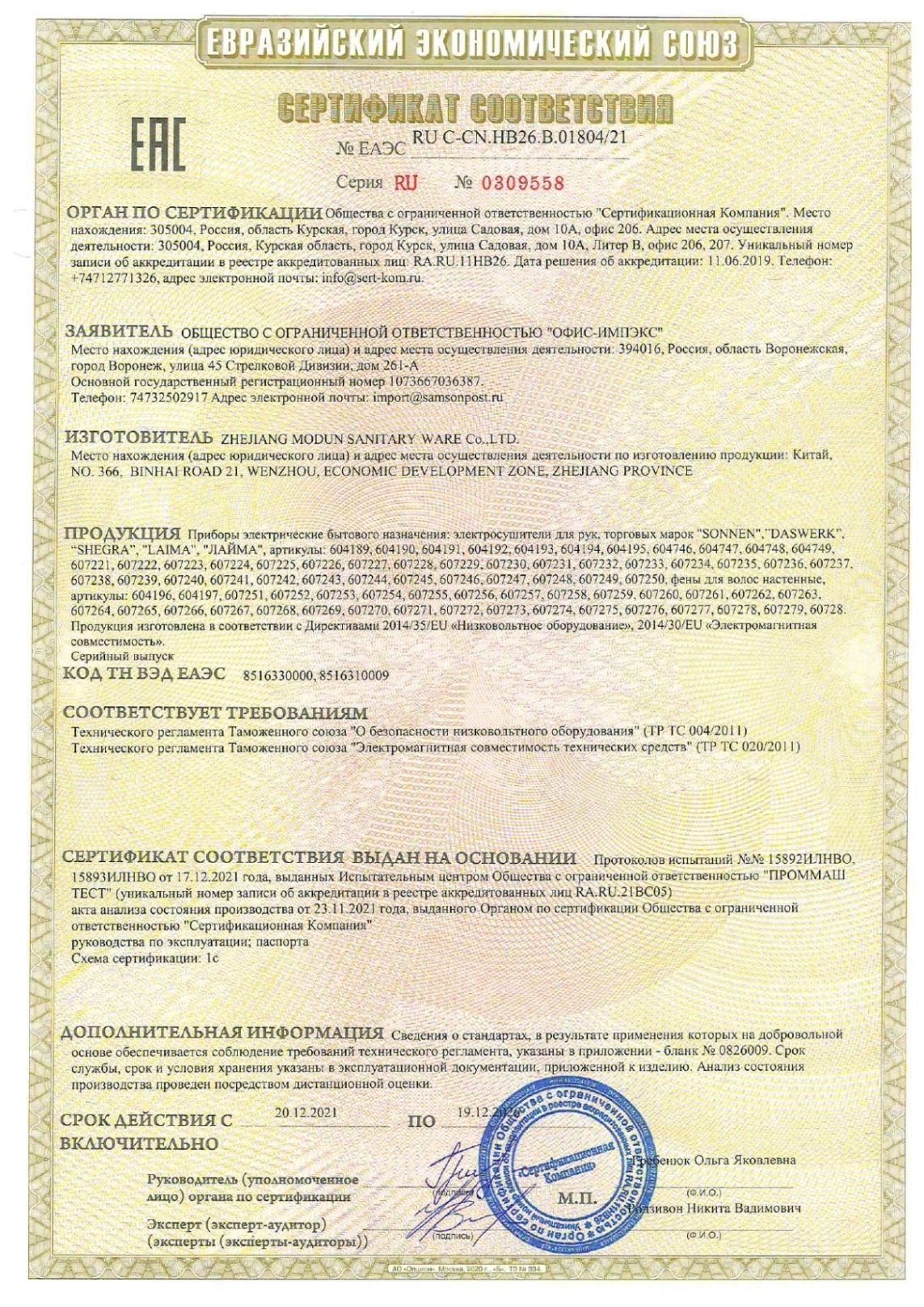 | Класс влагозащиты | IPX 1 |