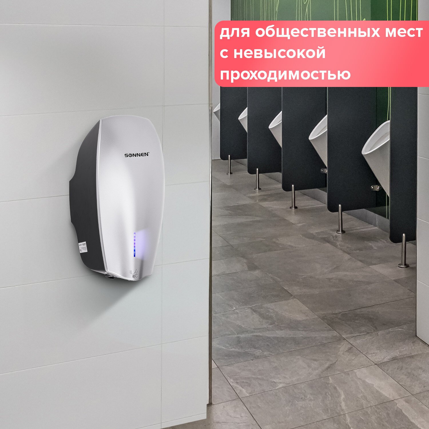 Электросушилка для рук SONNEN HD-M789G - качественная и удобная модель аксессуаров для презентабельного вида туалетных комнат и высокого уровня гигиены.