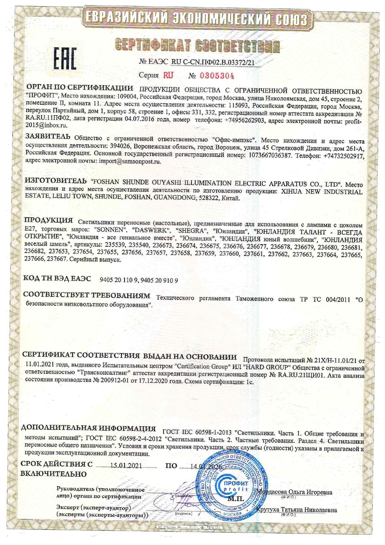 | Источник света | сменная лампа накаливания / КЛЛ / LED |