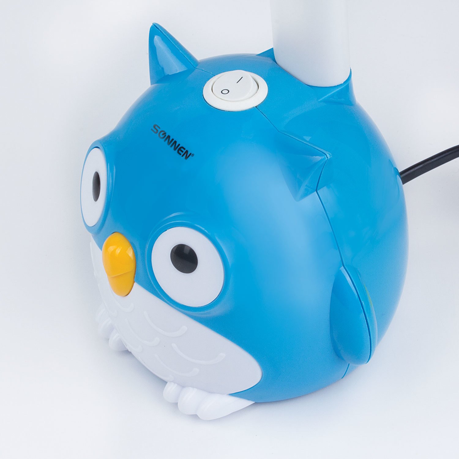 Светильник настольный SONNEN OU-603, на подставке, цоколь Е27, "Сова", синий, 236674