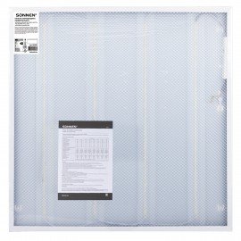 Светодиодная панель SONNEN оснащена металлическим корпусом с пластиковыми элементами. Степень пылевлагозащиты IP40 способствует длительному сроку службы. Устройство действует от стандартной электросети на 180-260 В с мощностью 36 Вт.