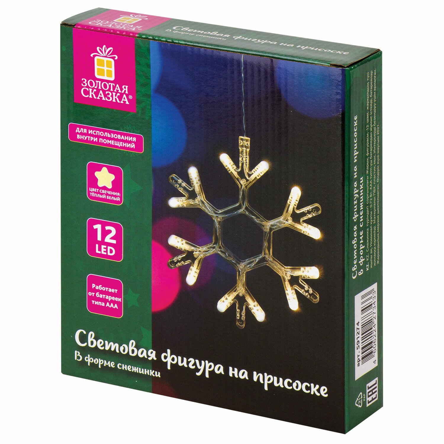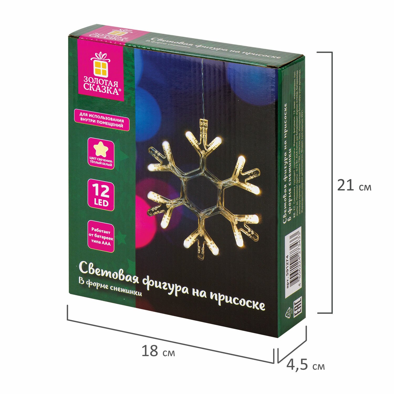 Световая фигура на присоске ЗОЛОТАЯ СКАЗКА "Снежинка" - функциональный предмет декора, способный преобразить домашний или офисный интерьер, создать уют и погрузить в атмосферу праздника.