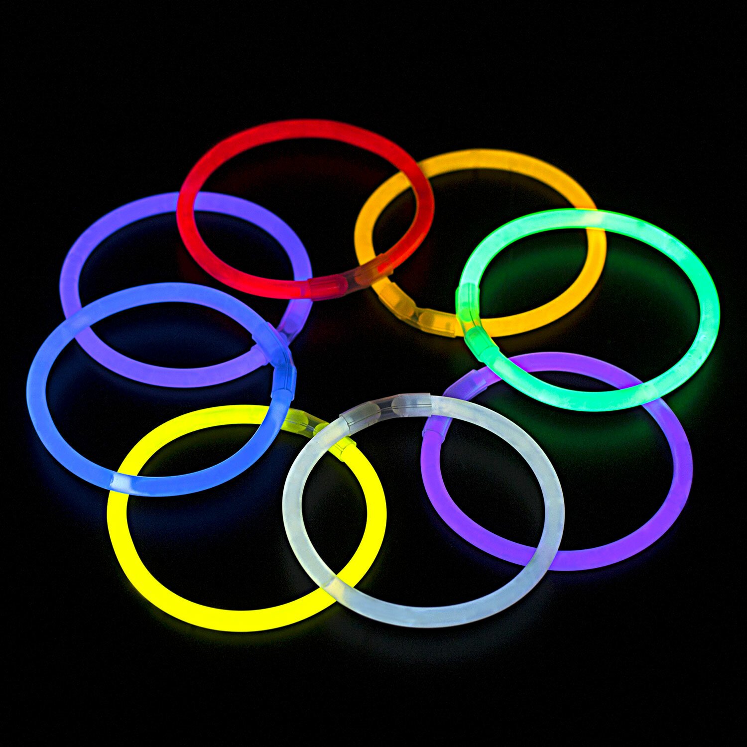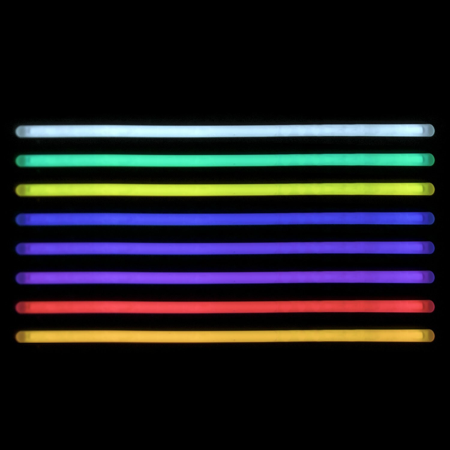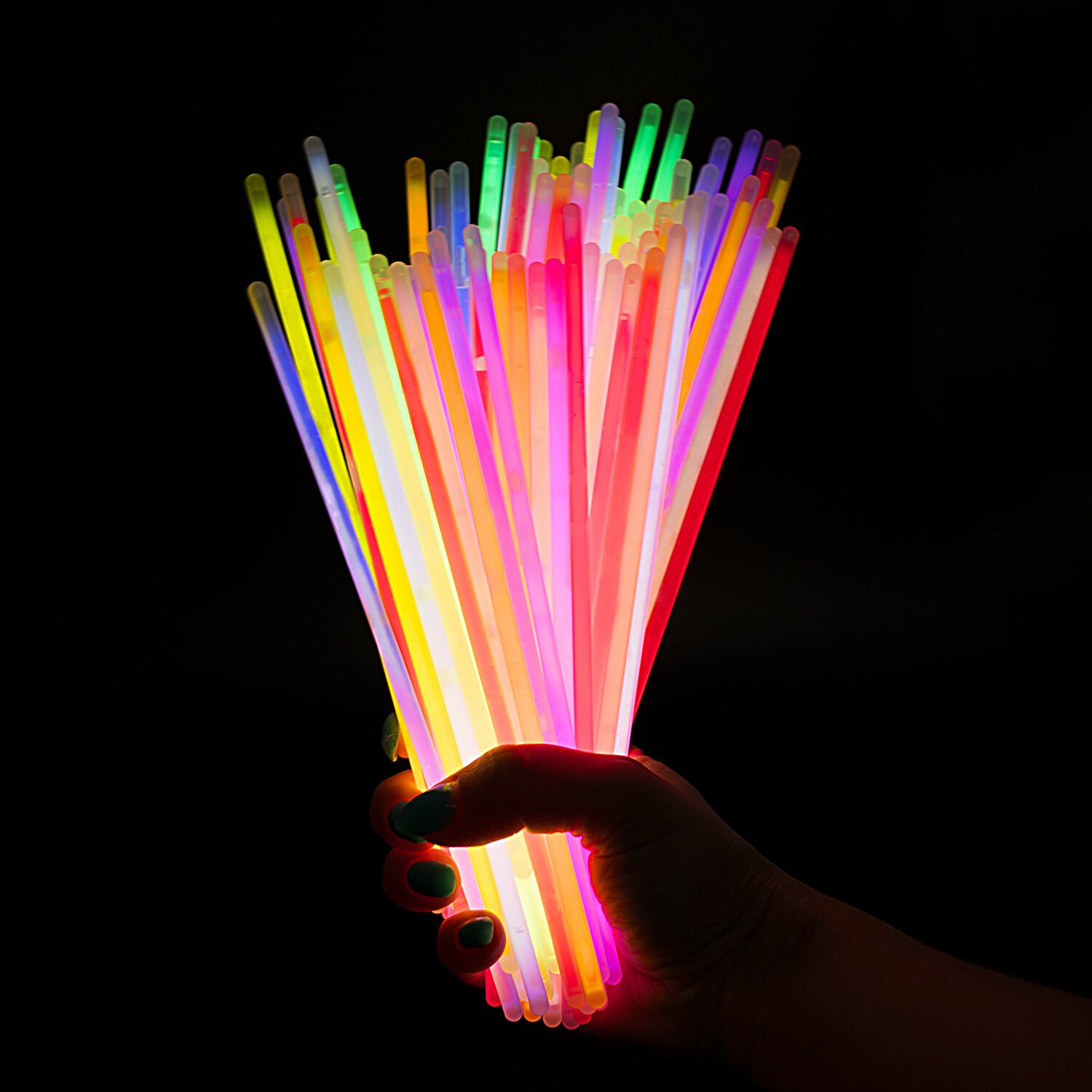 Дают неоновое свечение десяти разных цветов. Палочки водонепроницаемые и могут быть использованы в дождливую погоду и даже под водой на небольшой глубине. Светятся до 6 часов. Чтобы активировать палочку, нужно надломить её в нескольких местах и тщательно потрясти, чтобы свечение стало более равномерным. Вставив оба конца палочки в коннектор, можно создать яркий браслет.