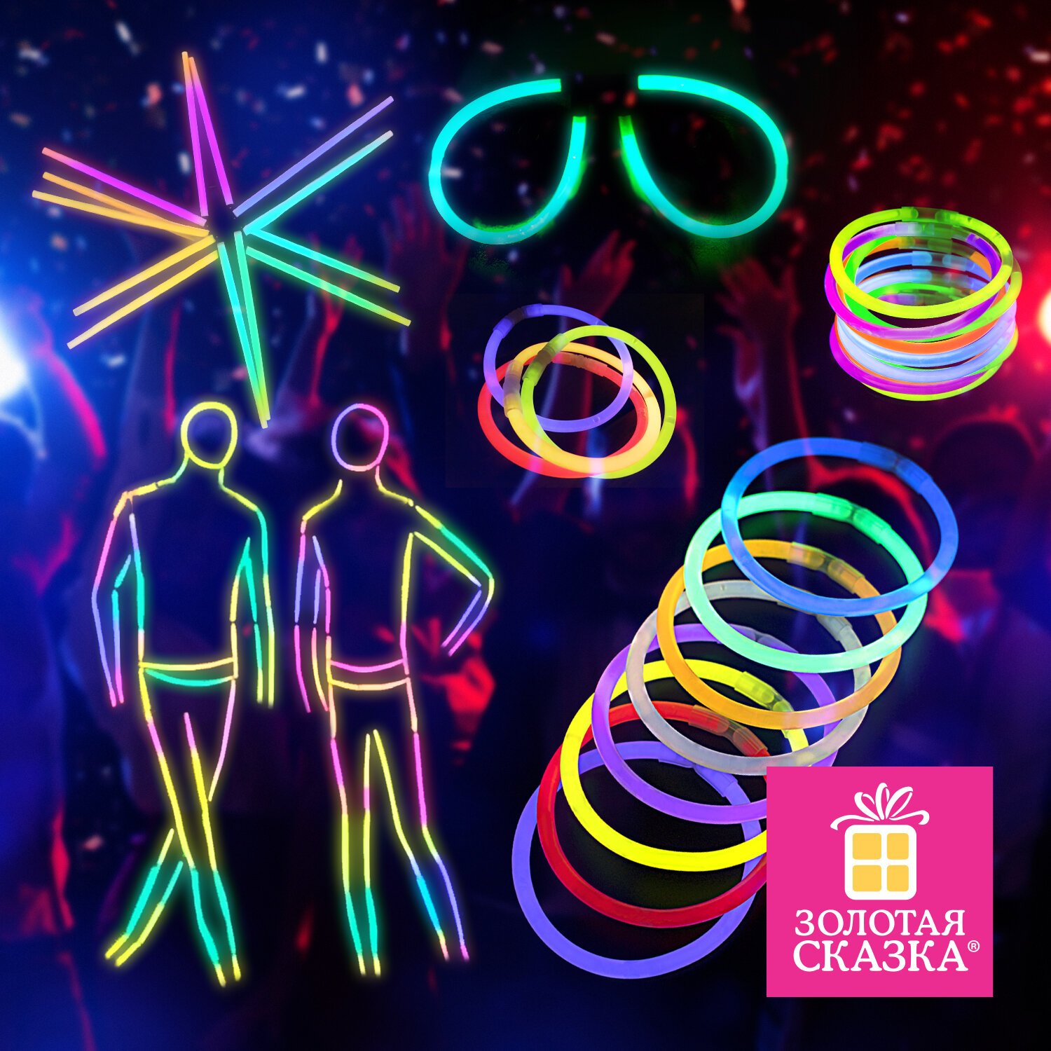 Светящиеся (неоновые) палочки ЗОЛОТАЯ СКАЗКА отлично подойдут для праздников, вечеринок, концертов и отдыха на природе.
