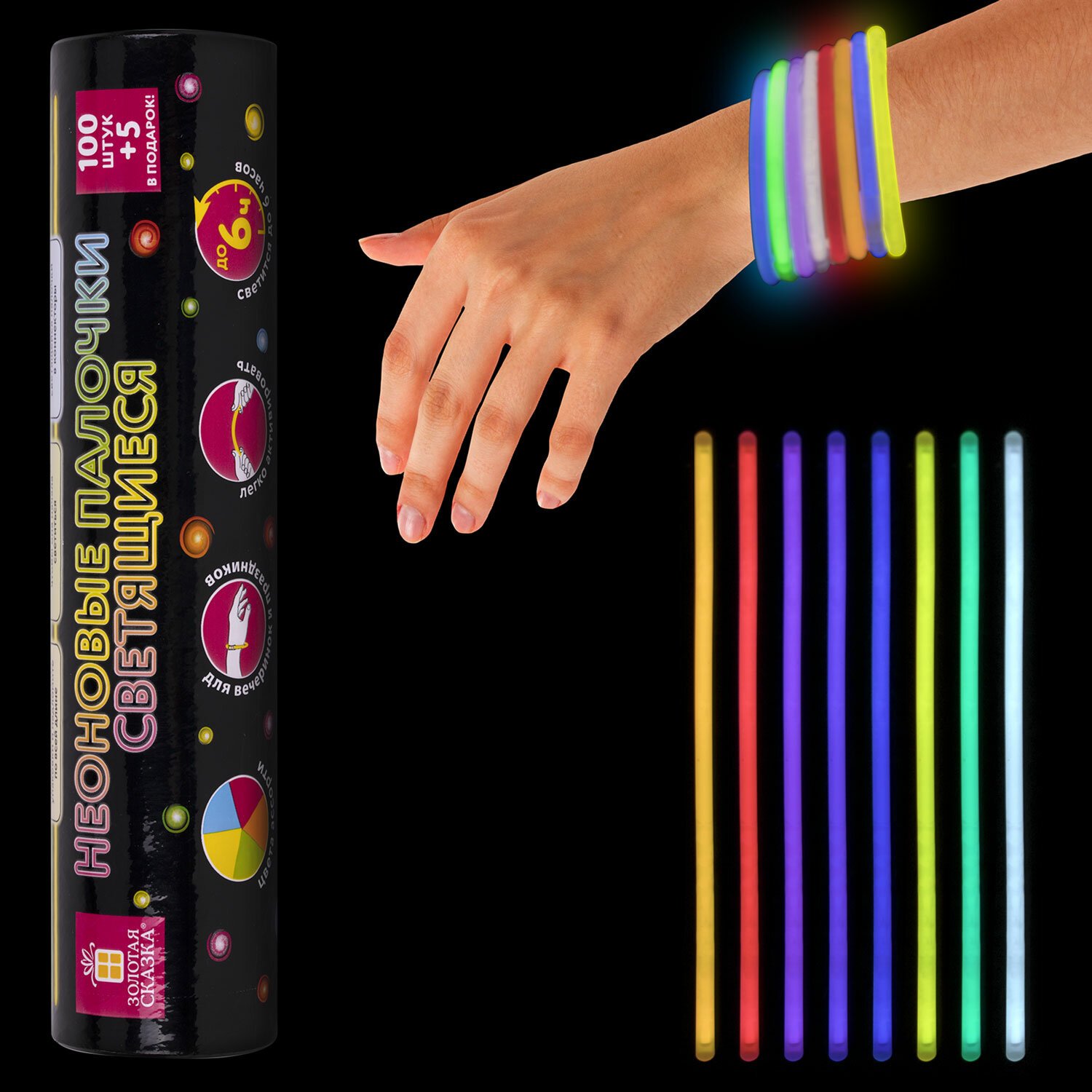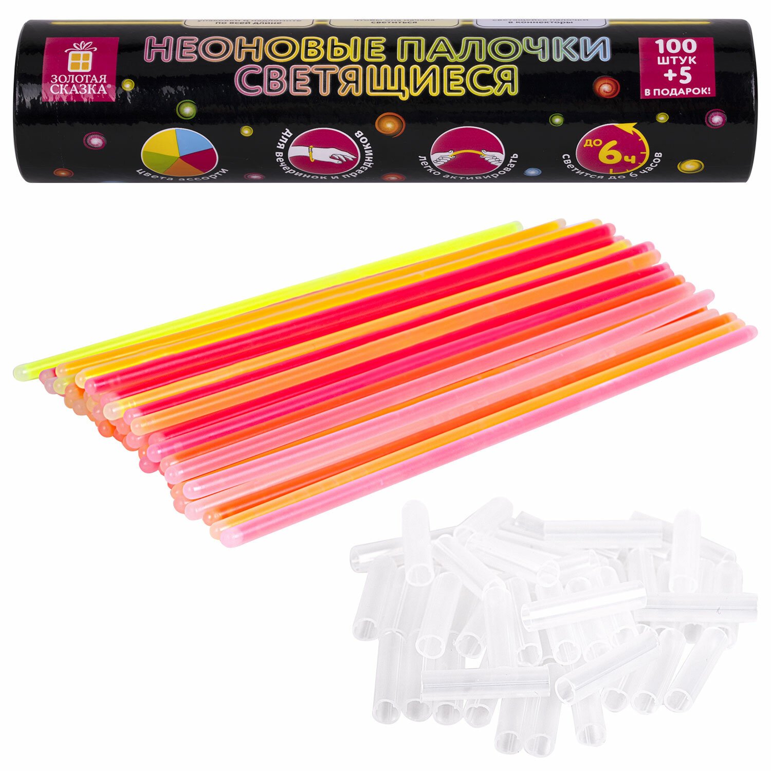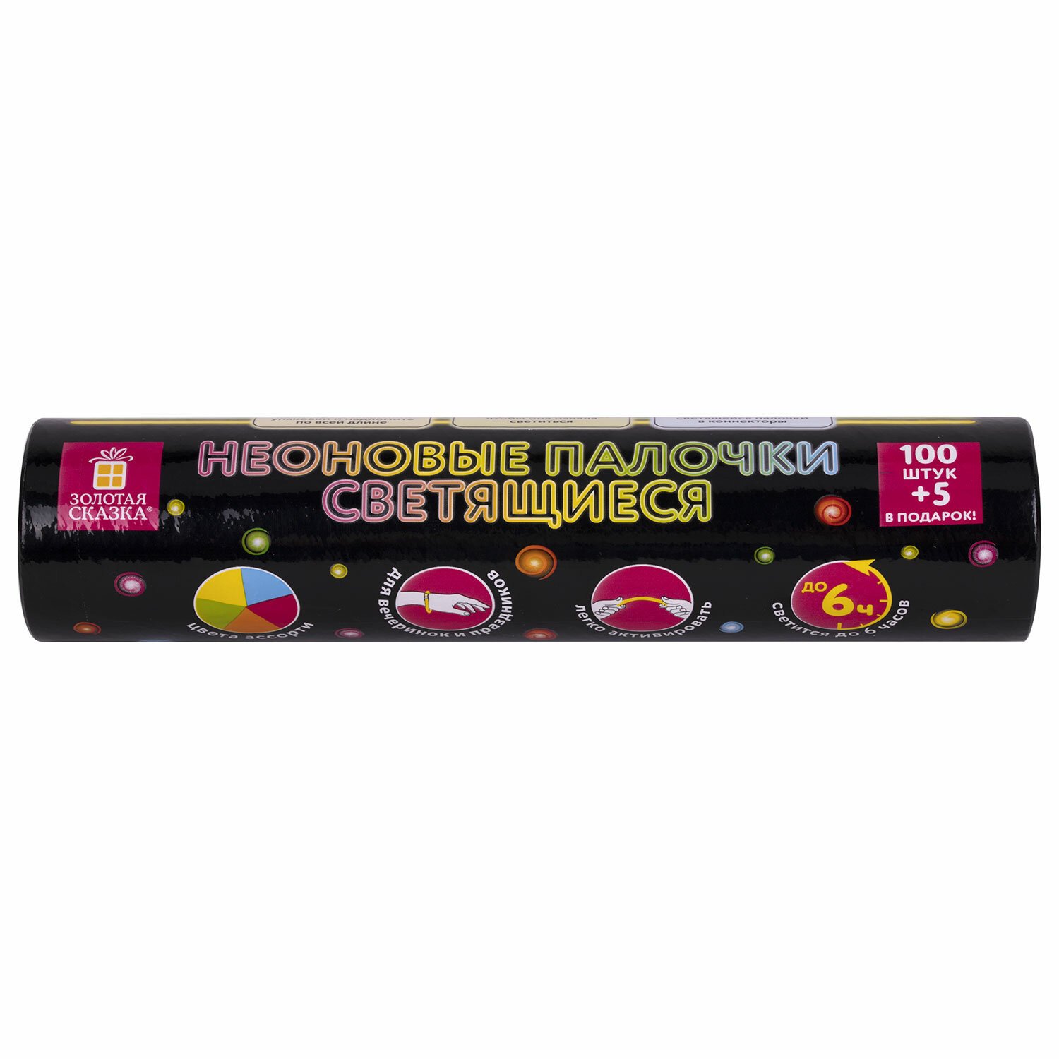 Светящиеся (неоновые) палочки-браслеты "100 шт. + 5 в ПОДАРОК!" в тубе, ЗОЛОТАЯ СКАЗКА, 662596