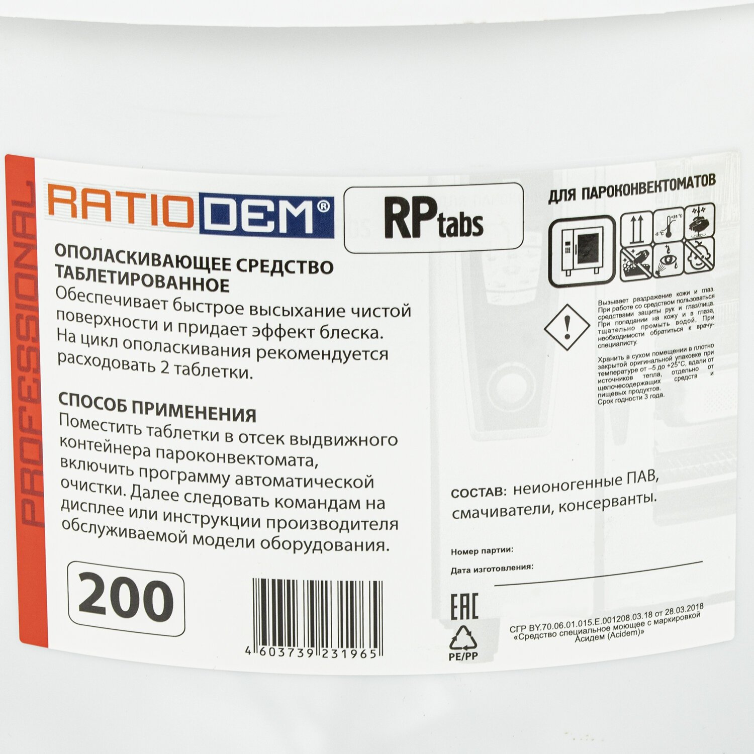 Таблетки для пароконвектоматов ополаскивающие 200 шт., RatioDem RP, ведерко