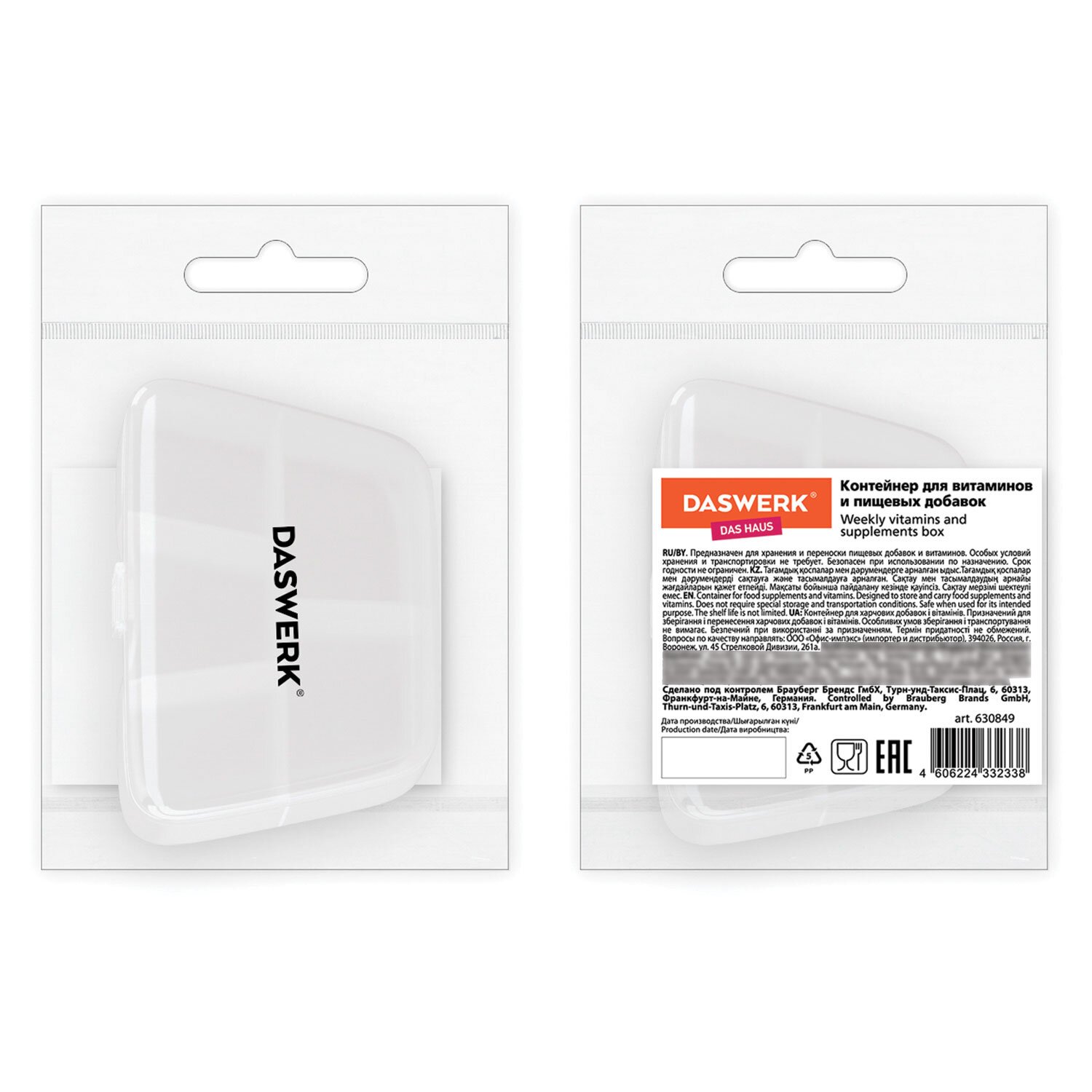 Таблетница DASWERK предназначена для надежного хранения лекарств, витаминов и пищевых добавок. Контейнер из легкого и прочного пластика гарантирует удобство и безопасность в использовании.