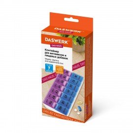 Таблетница DASWERK предназначена для надежного хранения лекарств, витаминов и пищевых добавок. Контейнер из легкого и прочного пластика гарантирует удобство и безопасность в использовании.