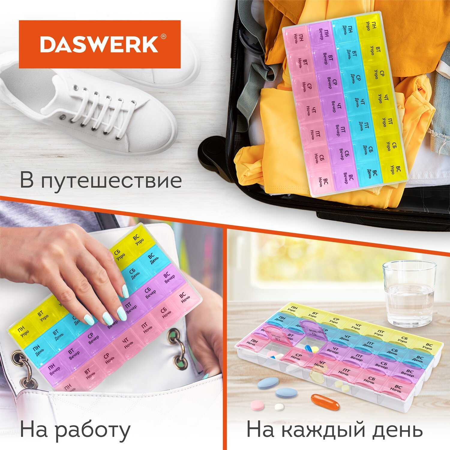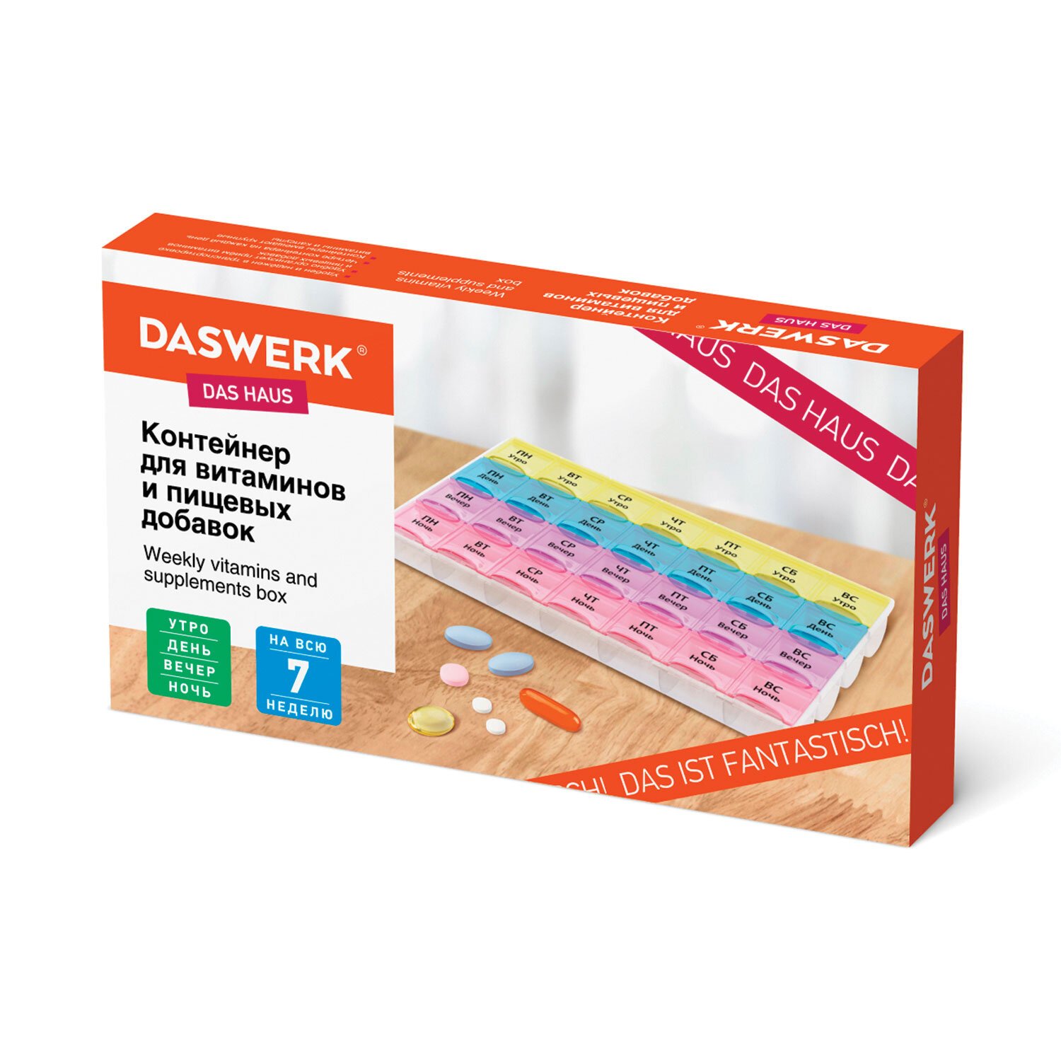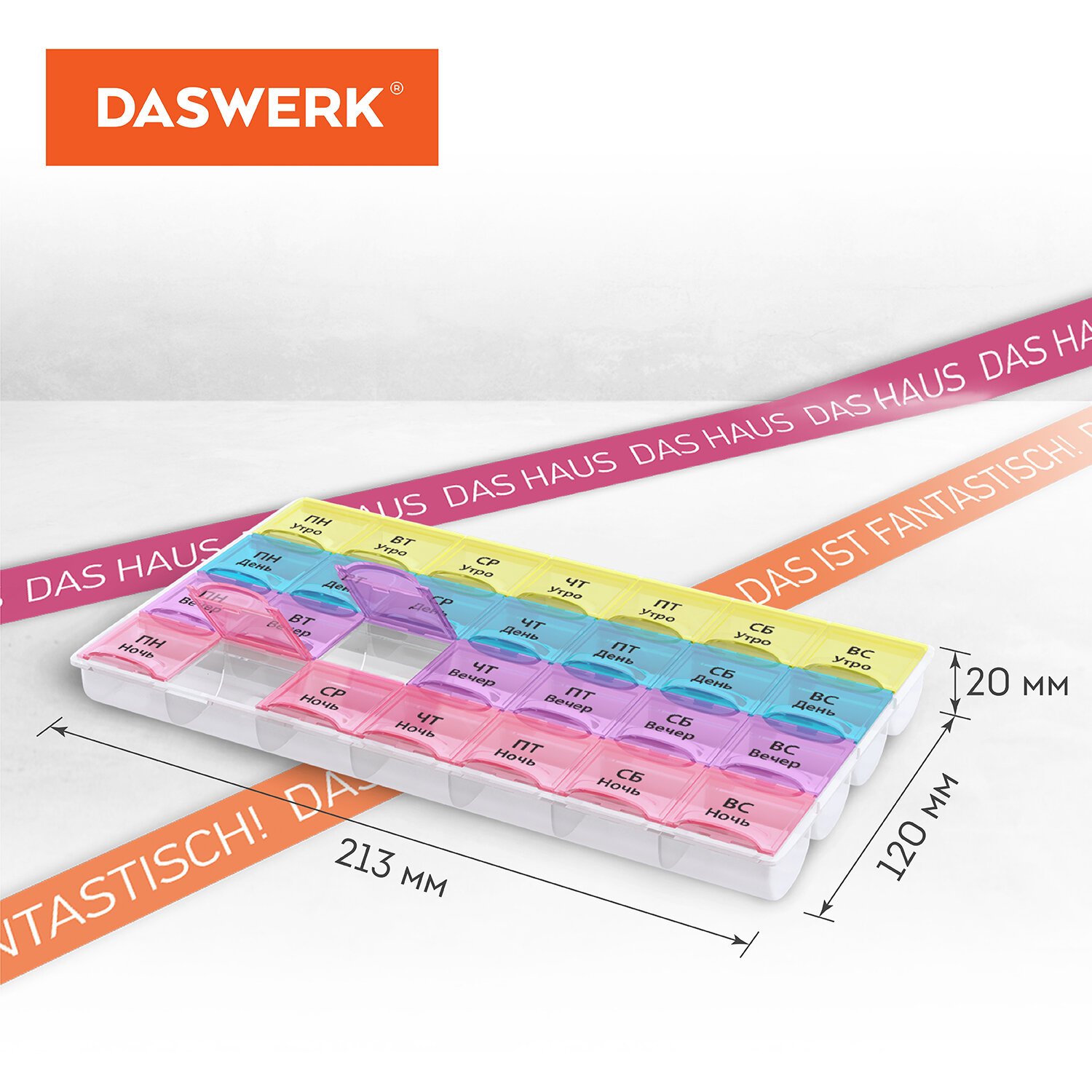 ТАБЛЕТНИЦА / Контейнер-органайзер для лекарств и витаминов, 7 дней/3 приема BOX, DASWERK, 630848
