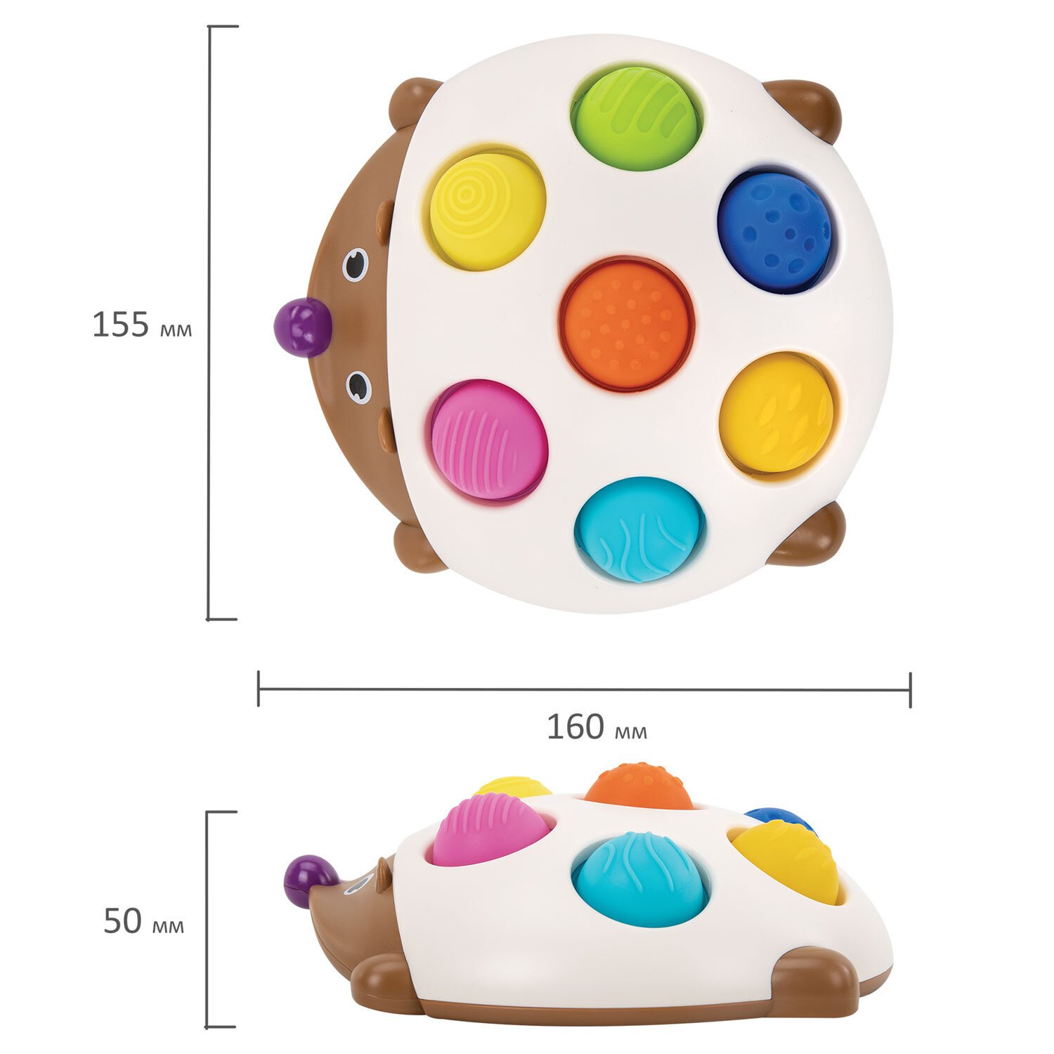 Тактильная сенсорная развивающая игрушка "Ёжик"- яркая, качественная и приятная на ощупь. Она поможет самым маленьким познать окружающий мир при помощи сенсорики. Яркие кнопки разного цвета и диаметра помогут изучить малышу основные цвета в форме игры.
