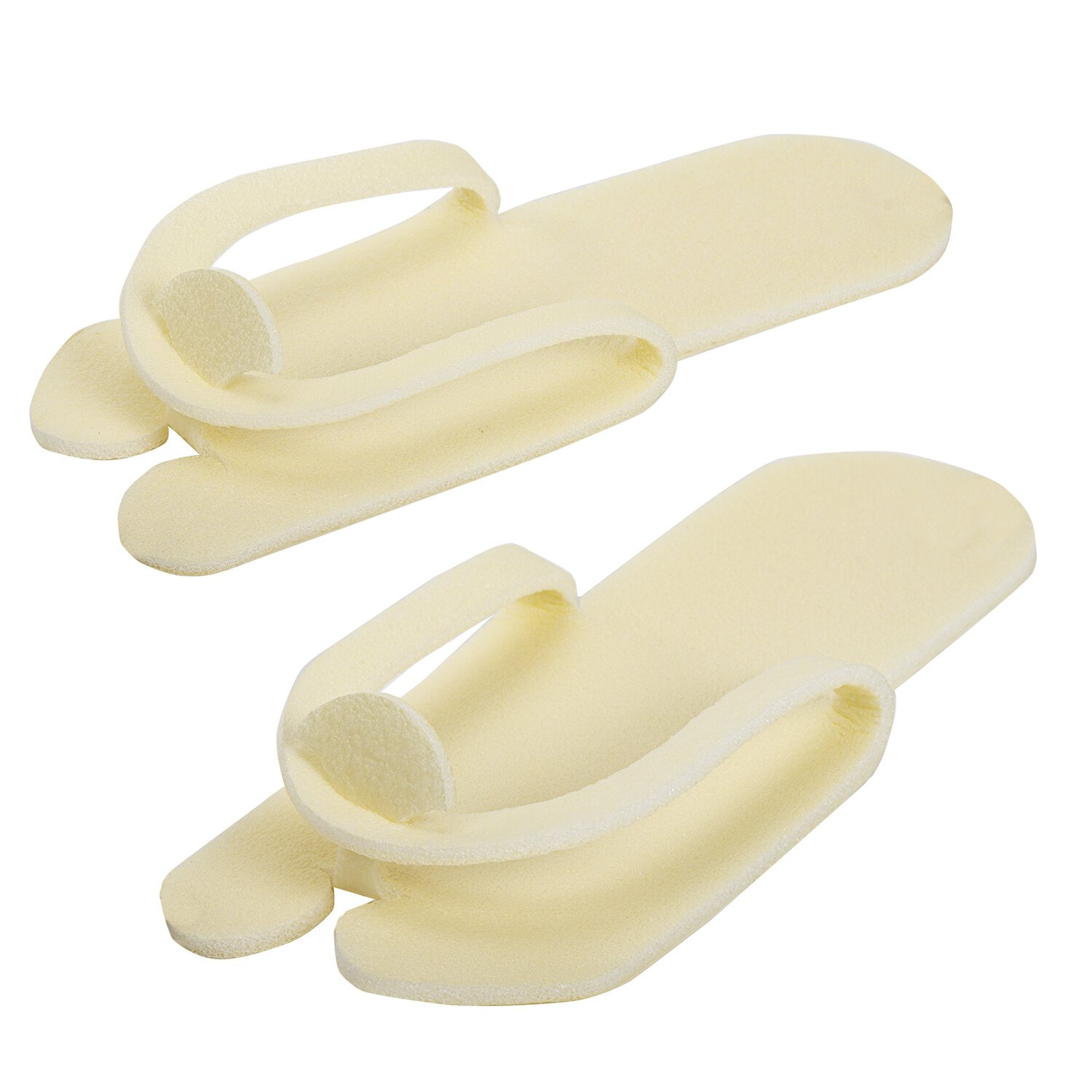 Упругие белые одноразовые тапочки из пенополиэтилена универсального размера, стойкие к влаге и перепадам температур. Тапочки-вьетнамки с толщиной подошвы 5 мм используются в педикюрных кабинетах, косметологических и СПА-салонах, банях, саунах, соляриях.